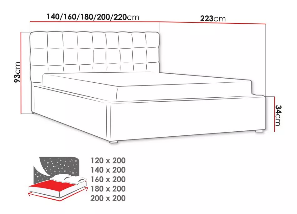 Součástí postele je rošt. Vhodnou matraci a topper k dokoupení naleznete níže.