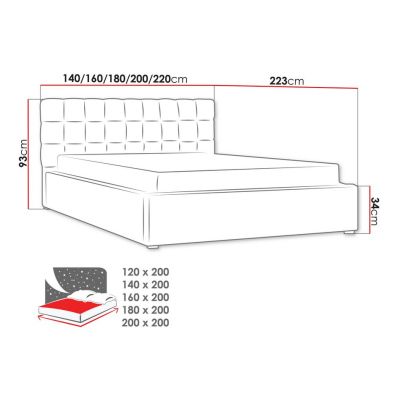 Součástí postele je rošt. Vhodnou matraci a topper k dokoupení naleznete níže.