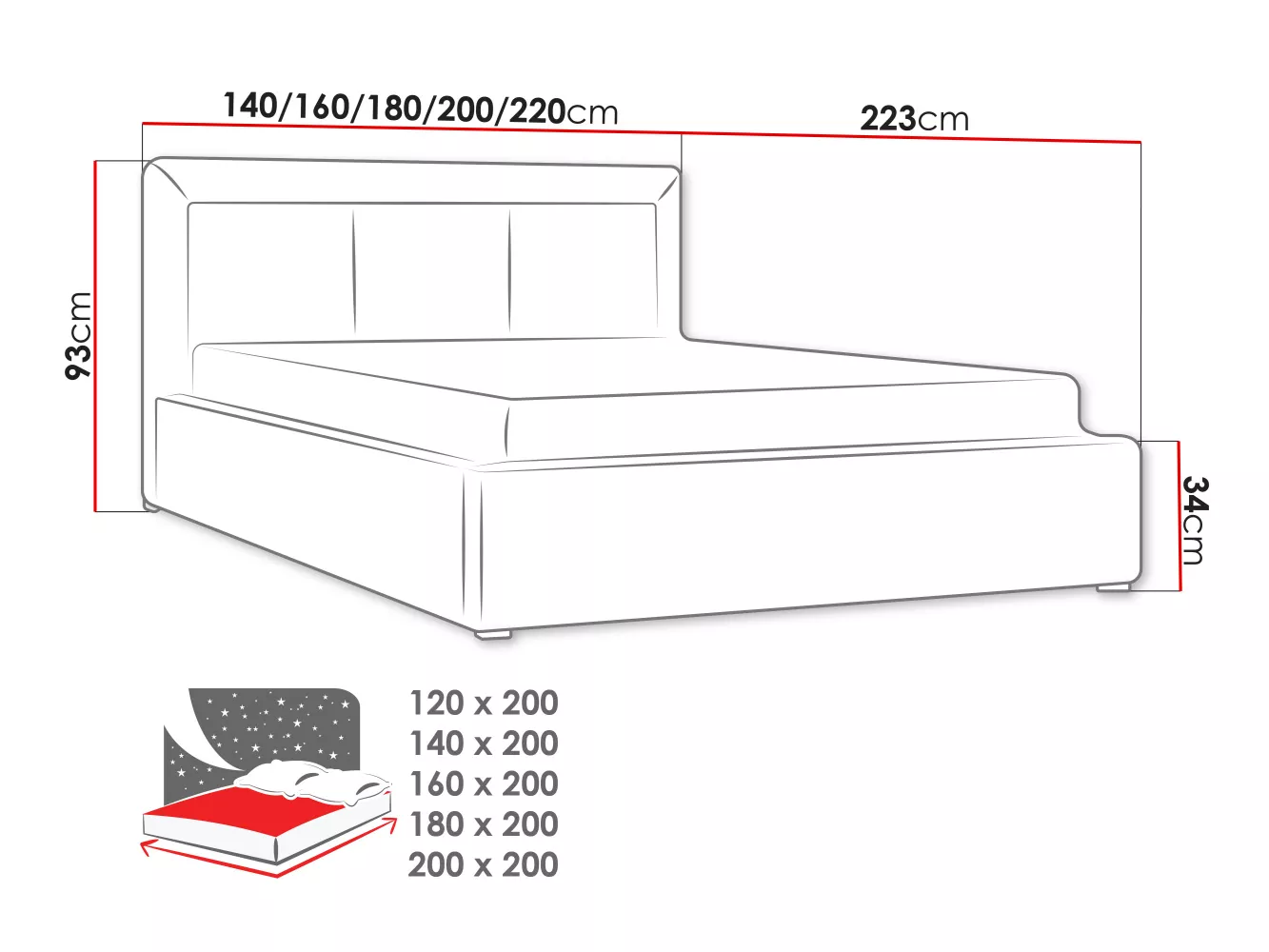 - výška ložné plochy: 34 cm