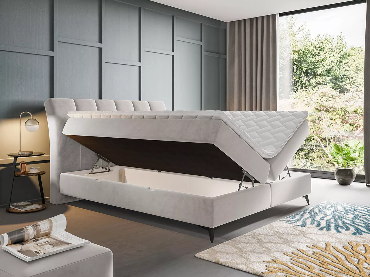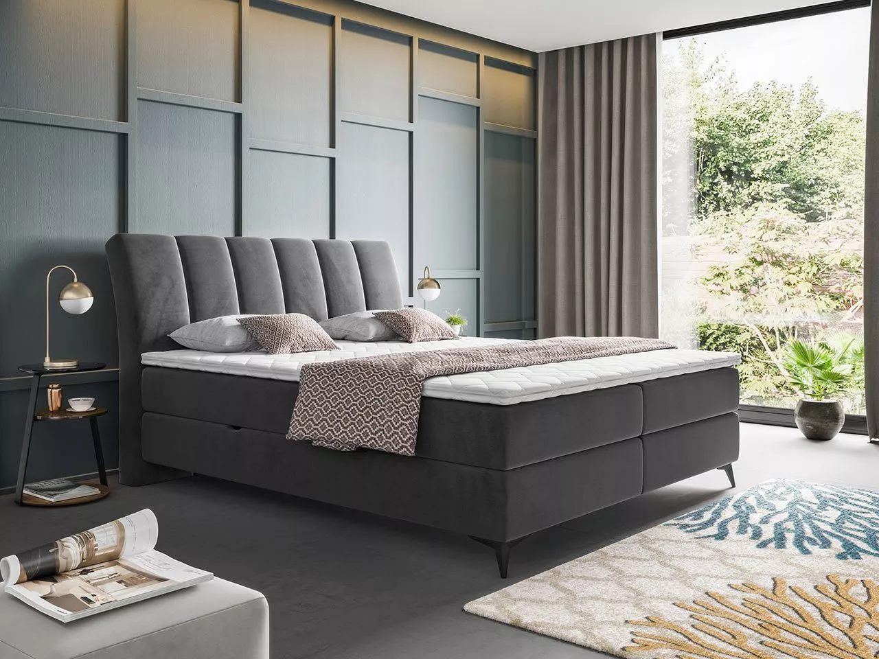 Kontinentální manželská postel TALLOW je vybavena módním a měkkým čelem, které poskytuje příjemný komfort při čtení knih nebo sledování televize, a zároveň chrání stěnu před znečištěním. Postel o spací ploše 140x200 cm je vyrobena z kvalitních komponentů, které zodpovídají za zdravý spánek a pocit relaxace. Nechybí ani dvoukomorový úložný prostor na lůžkoviny.