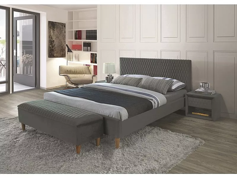 Čalouněná manželská postel NEVIO - 140x200 cm, šedá