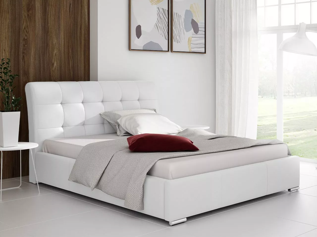 Čalouněná manželská postel 140x200 XEVERA - bílá ekokůže