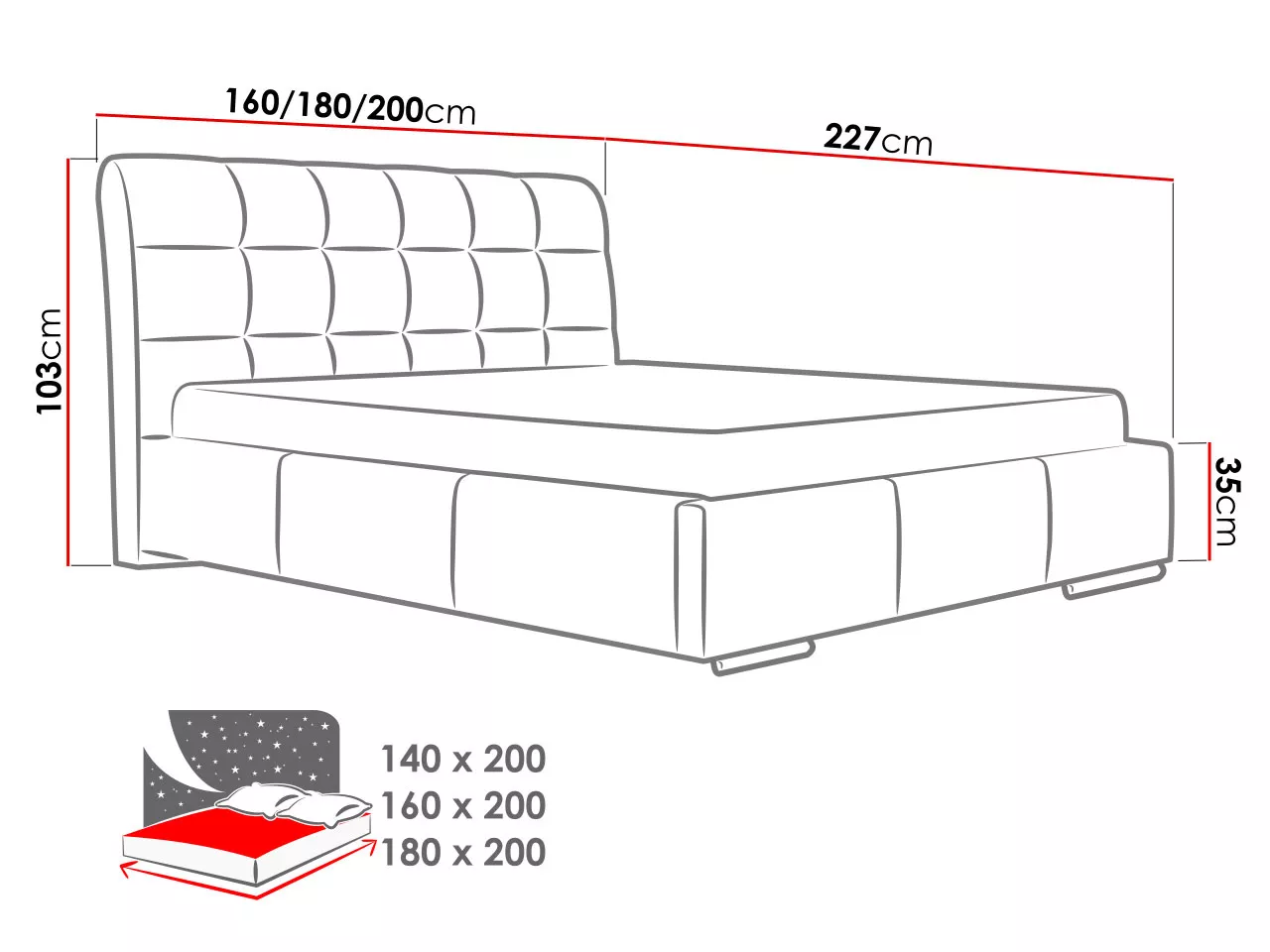 Čalouněná manželská postel XEVERA o spací ploše 180x200 cm je vybavena velkorysým dvoukomorovým úložným prostorem a vysokým měkkým čelem, které vám poskytne dokonalou oporu zad. Postel je vyrobena z vysoce kvalitních materiálů zaručujících stabilitu.