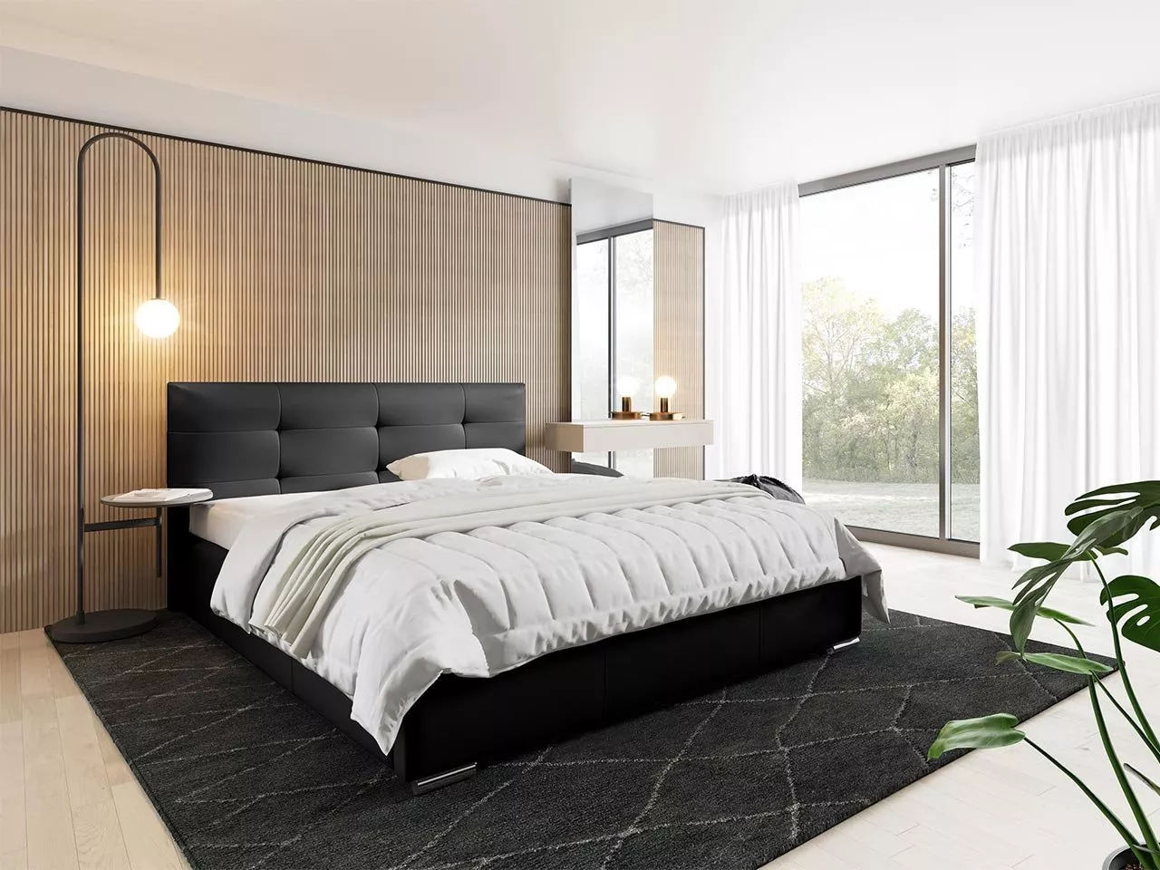Čalouněná manželská postel 160x200 YADRA - černá ekokůže