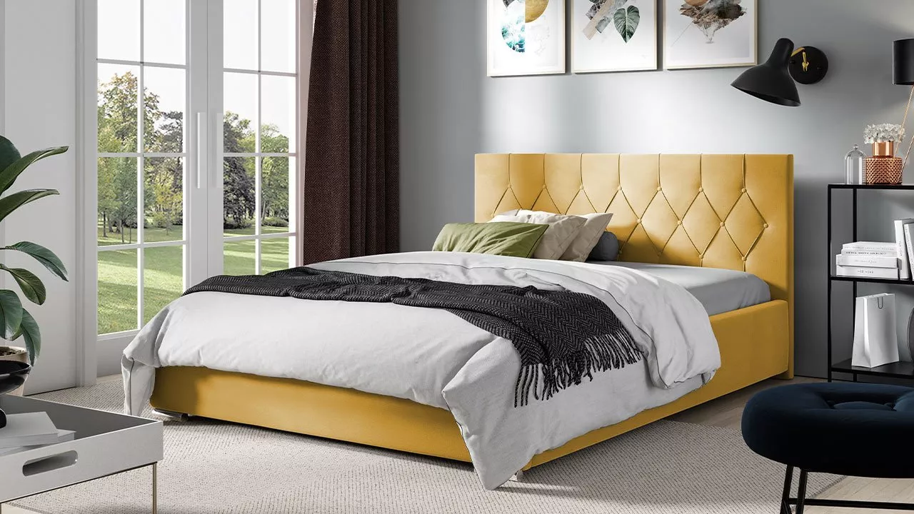 Čalouněná dvojlůžková postel 140x200 SENCE 3 - žlutá