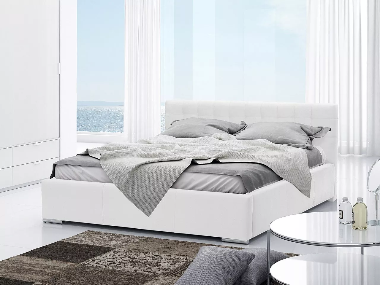 Manželská čalouněná postel 140x200 ZARITA - bílá ekokůže