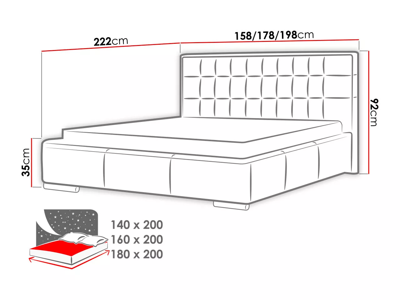 Manželská čalouněná postel ZARITA o spací ploše 180x200 cm je vybavena vysokým čelem s ozdobným prošíváním, které poskytuje pohodlnou oporu pro vaše záda a ochranu proti chladné zdi. Hrany postele jsou vybaveny měkkou pěnovou vložkou, která eliminuje riziko bolestivého nárazu. Nechybí ani dvoukomorový úložný prostor na lůžkoviny.