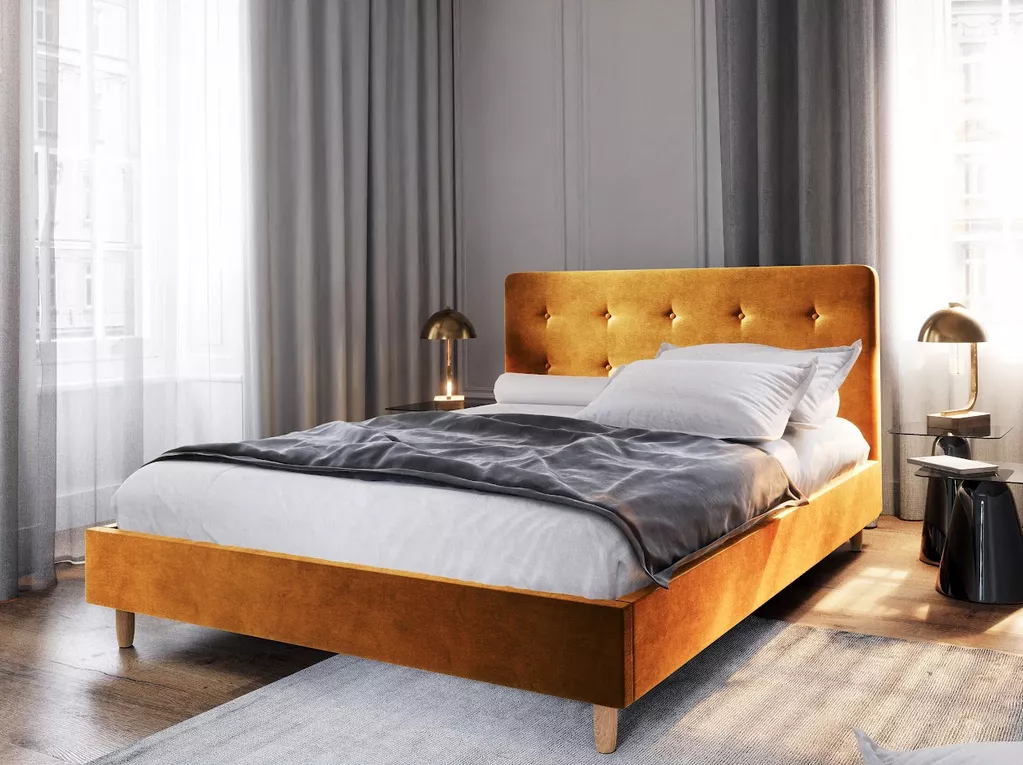 Čalouněná manželská postel NOOR - 140x200, hořčicová