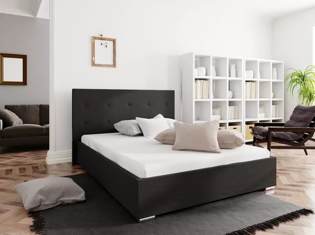 Manželská postel s úložným prostorem FLEK 1 se hodí do všech moderních ložnic. Čalouněné čelo zamezí poškrábání a zašpinění zdi. Postel disponuje úložným prostorem umístěným pod vyklápěcím roštem.