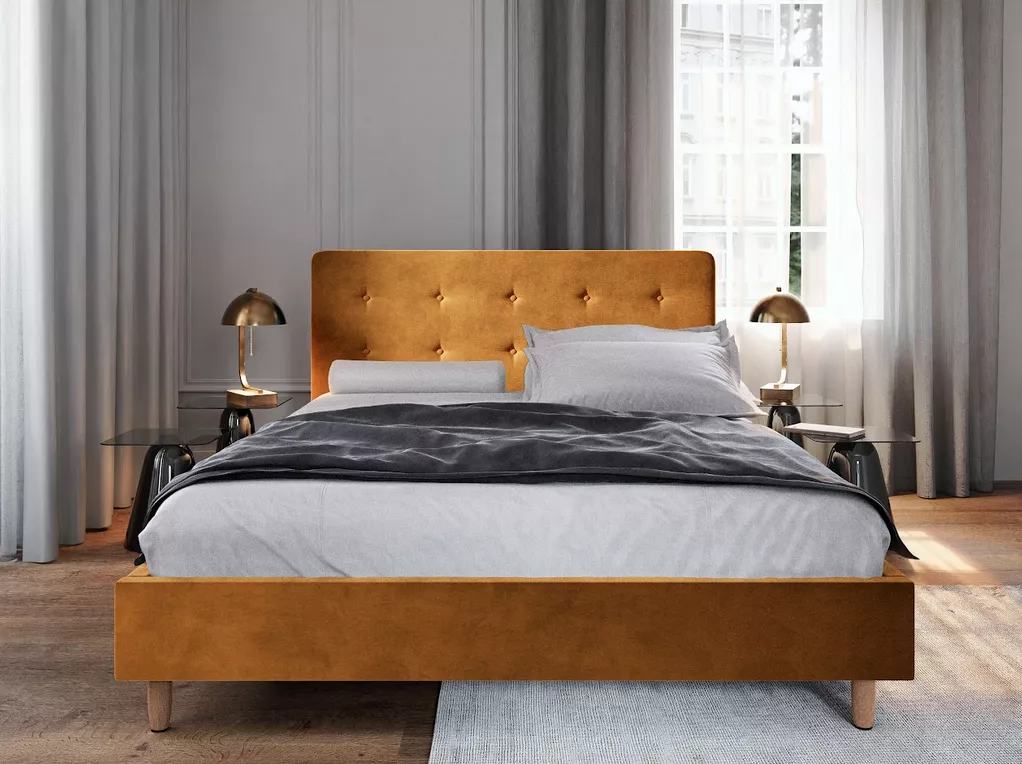 Manželská postel s úložným prostorem NOOR 2 - 180x200, hořčicová
