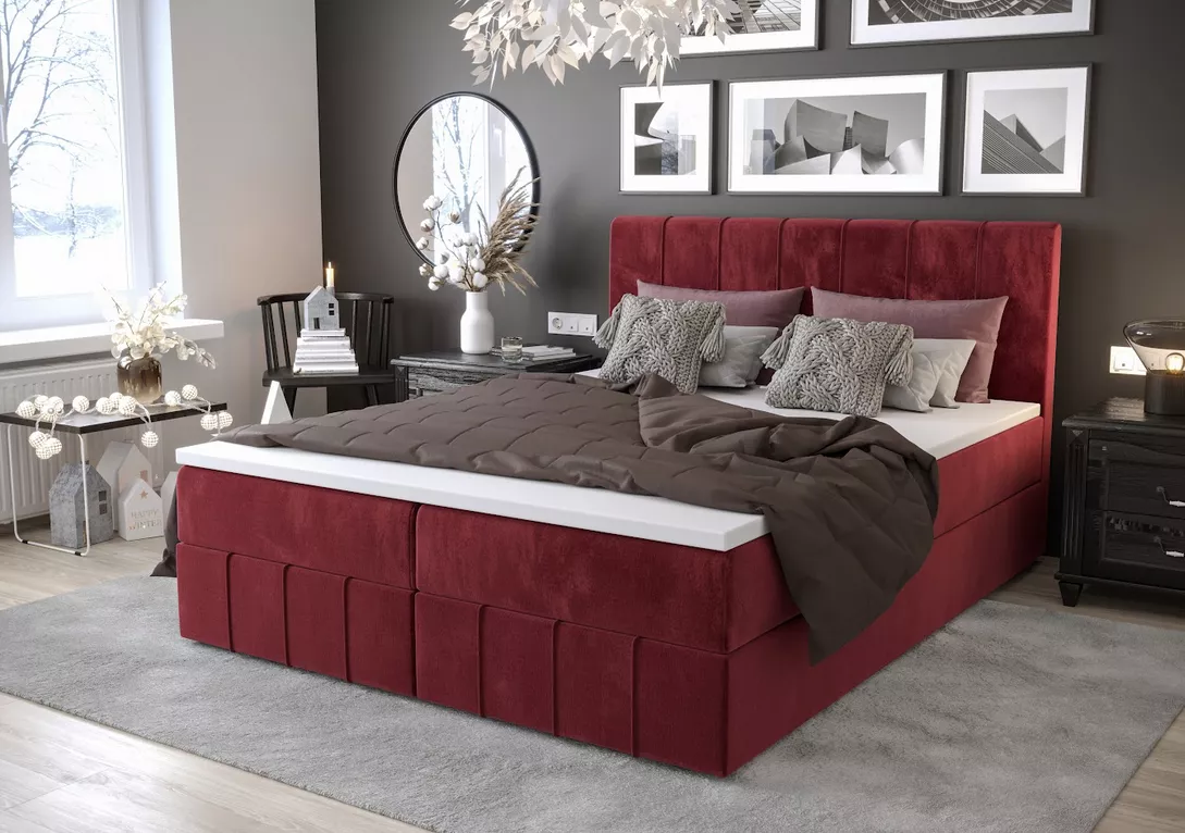 Boxspringová postel s úložným prostorem MADLEN - 200x200, červená
