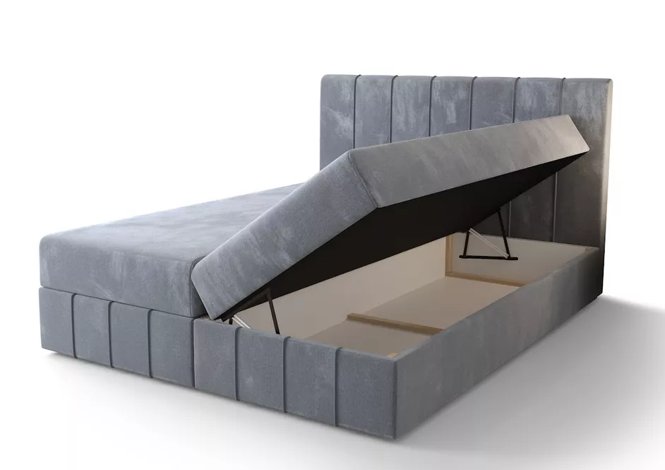 Boxspringová postel s úložným prostorem MADLEN se hodí do všech moderních ložnic. Čalouněné čelo zamezí poškrábání a zašpinění zdi. Postel disponuje 2 úložnými prostory, které jsou umístěné pod vyklápěcími rošty.