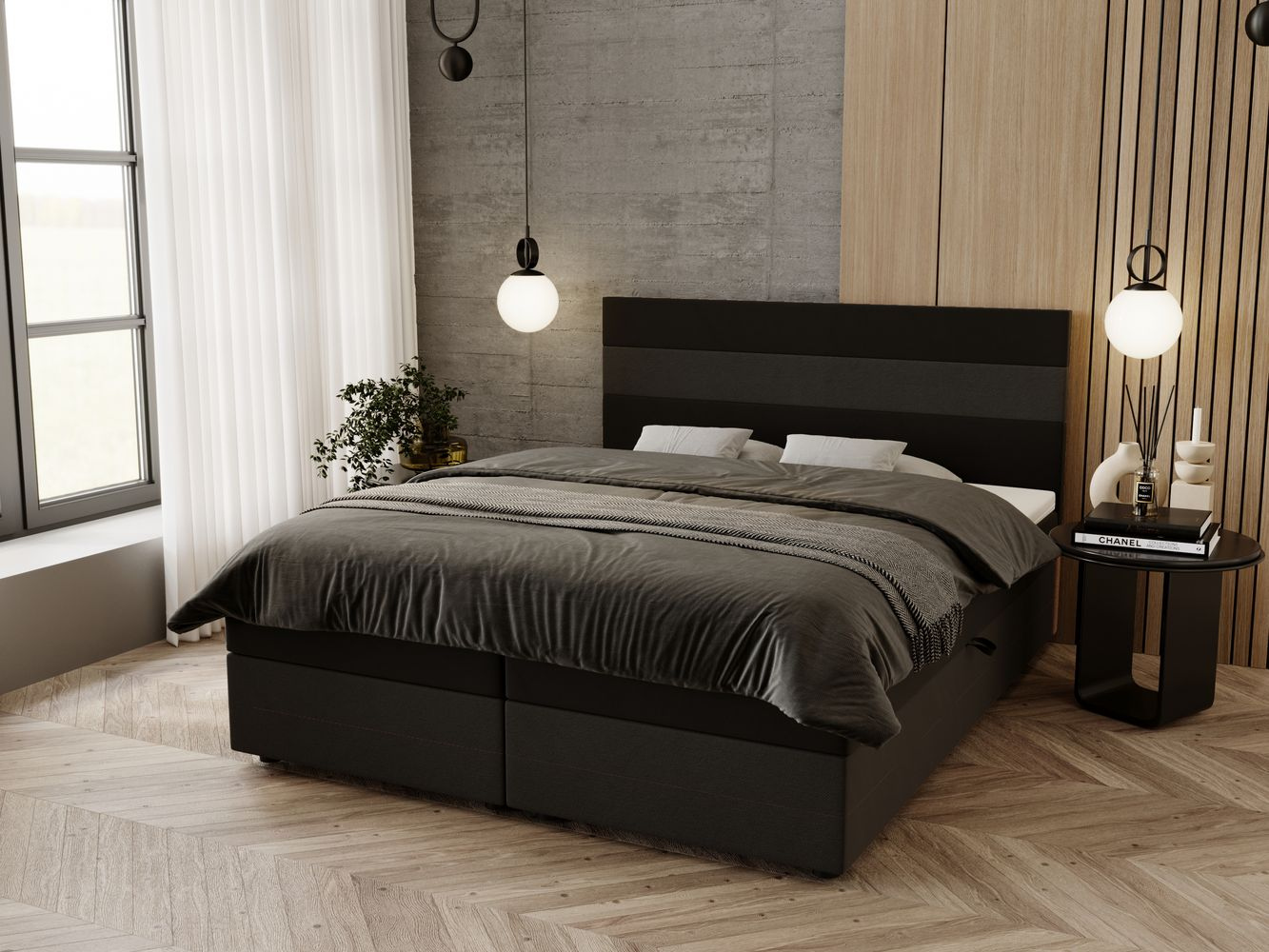Manželská postel s úložným prostorem STIG 3 se hodí do všech ložnic. Čalouněné čelo zamezí poškrábání a zašpinění zdi. Postel disponuje 2 úložnými prostory, které jsou umístěné pod vyklápěcími rošty.