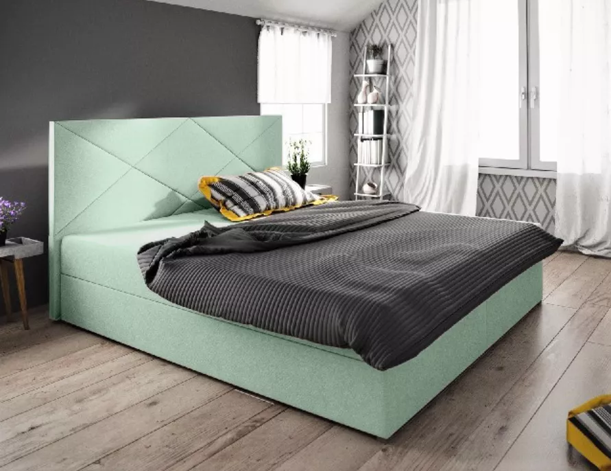 Manželská postel s úložným prostorem STIG 4 - 180x200, světle zelená