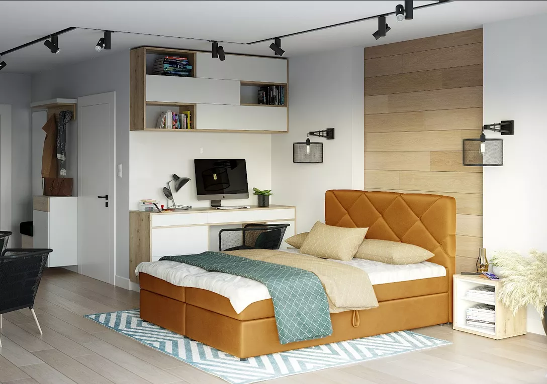 Manželská postel s úložným prostorem KATRIN - 200x200, hořčicová