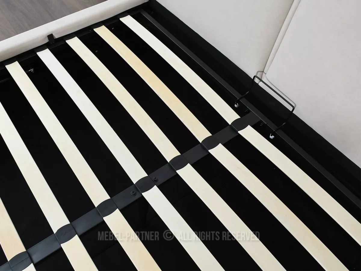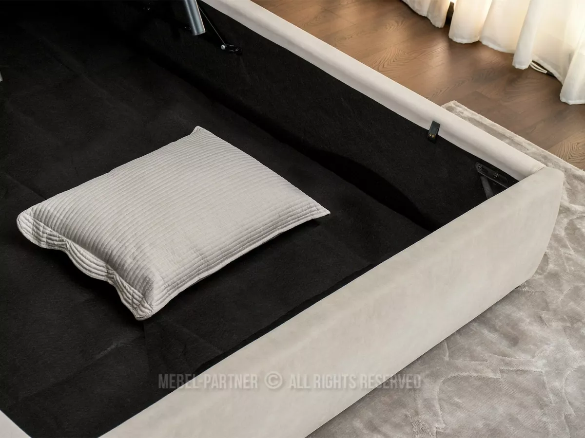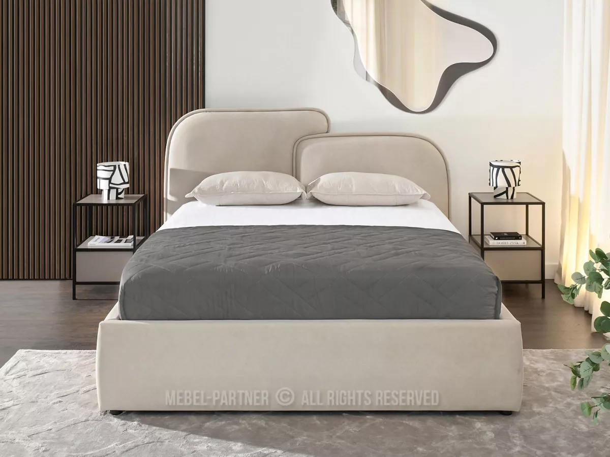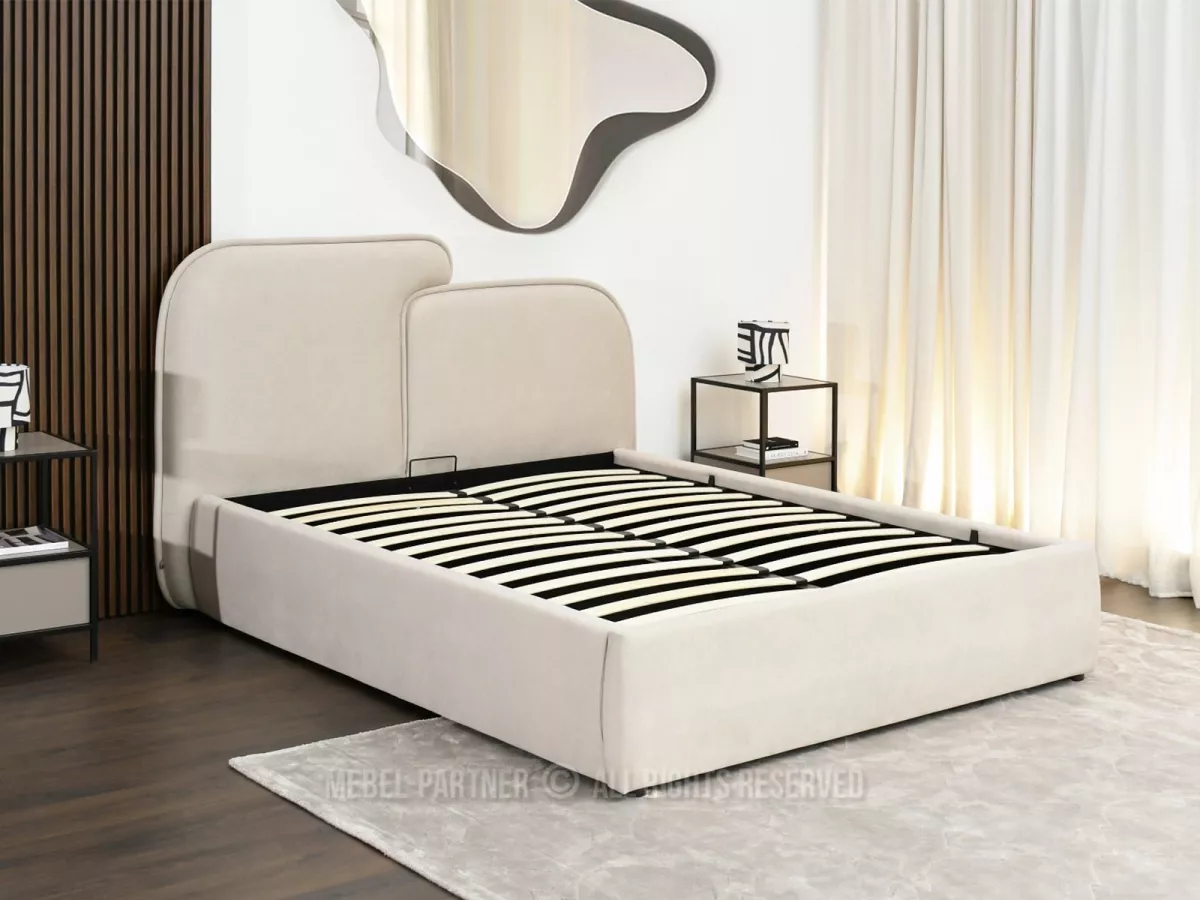 Designová postel 160x200 KANANI vám díky svému čalouněnému čelu zpříjemní každou chvíli odpočinku při čtení knihy nebo sledování televize. Součástí postele je úložný prostor pro uložení lůžkovin nebo sezónního oblečení.