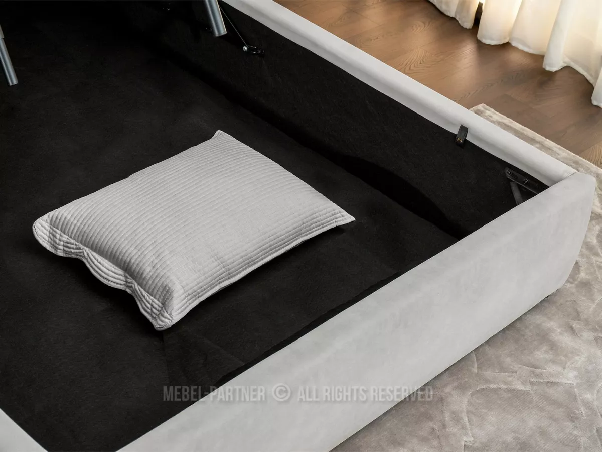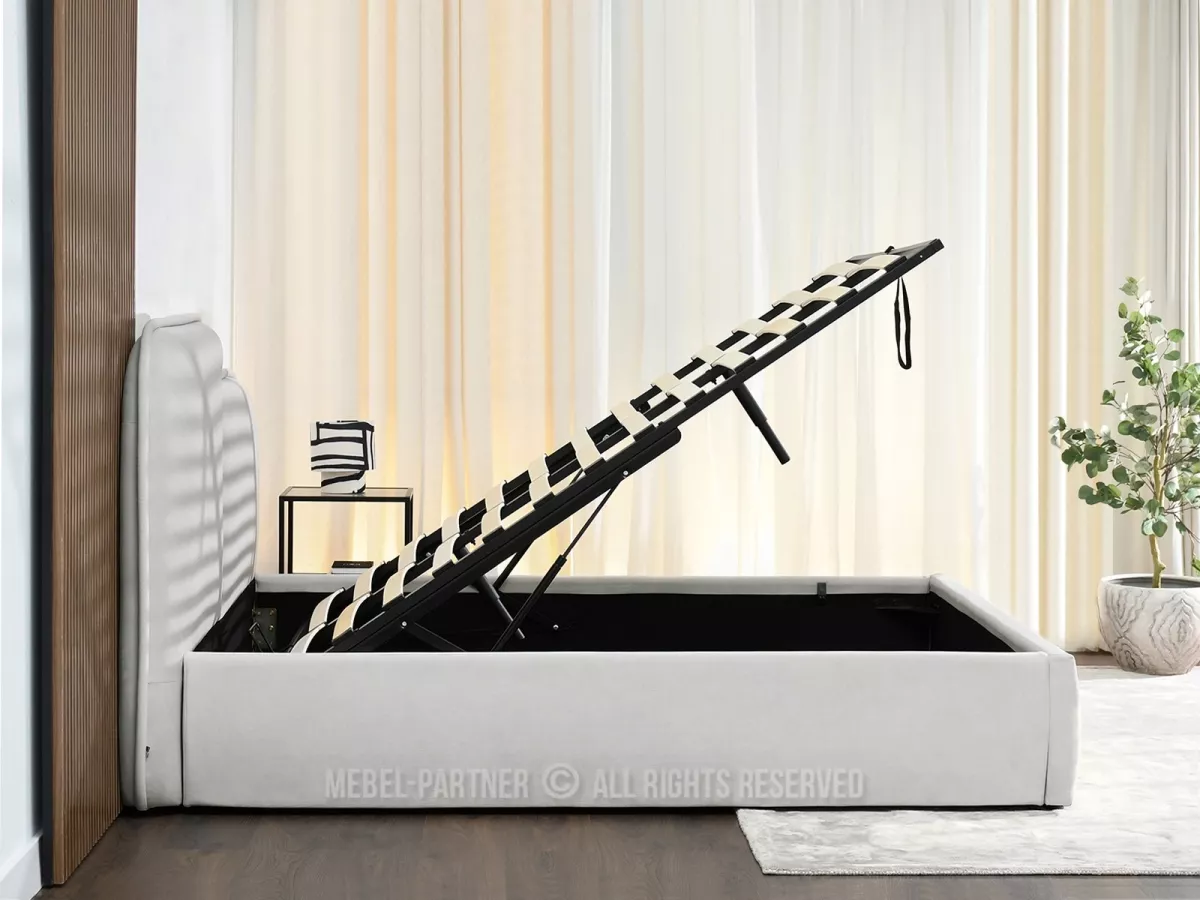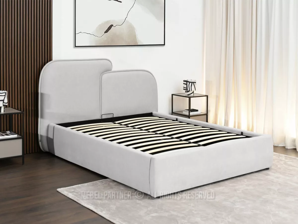 Designová postel 160x200 KANANI vám díky svému čalouněnému čelu zpříjemní každou chvíli odpočinku při čtení knihy nebo sledování televize. Součástí postele je úložný prostor pro uložení lůžkovin nebo sezónního oblečení.
