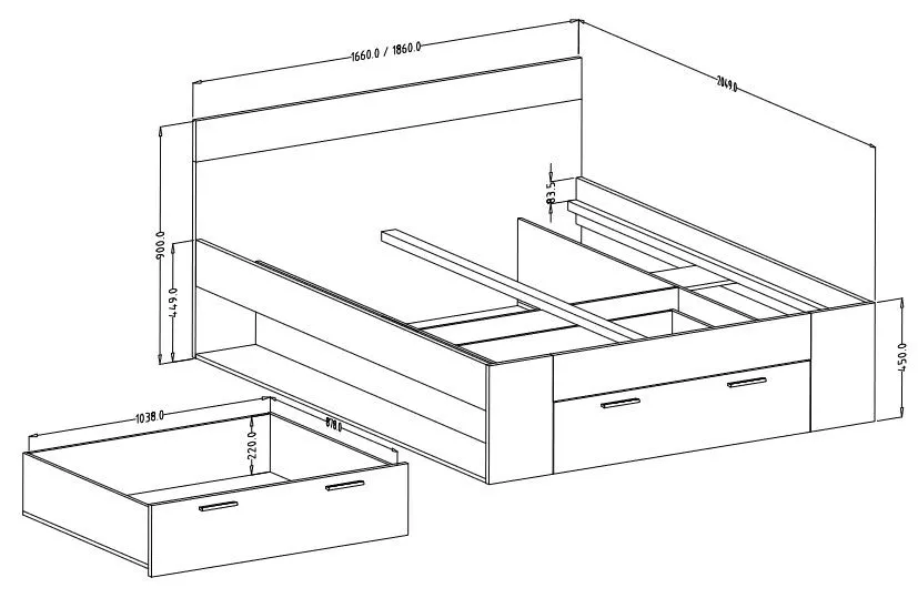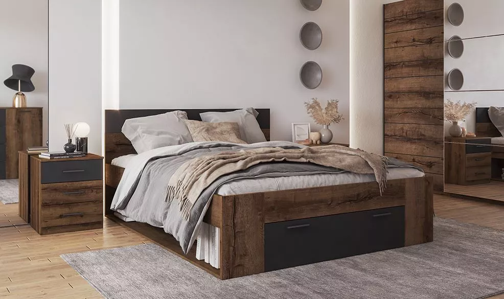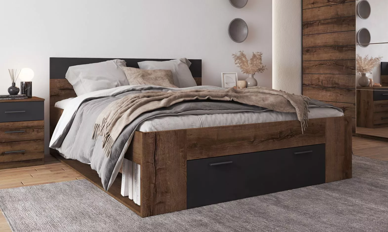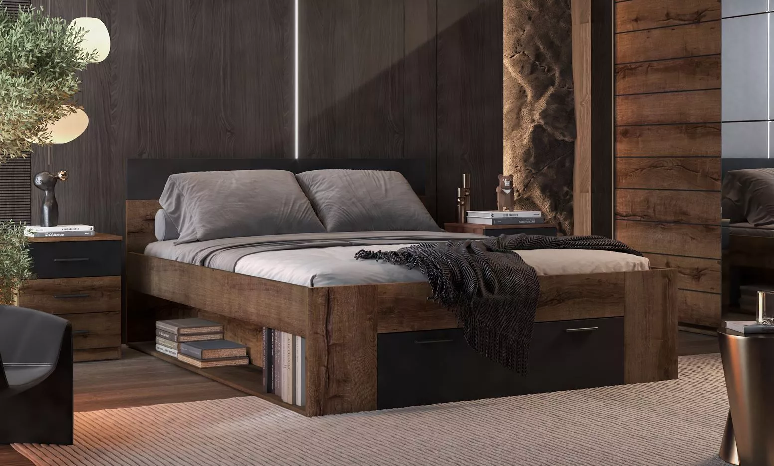 Manželská postel 160x200 s úložným prostorem CROWEL - dub monastery