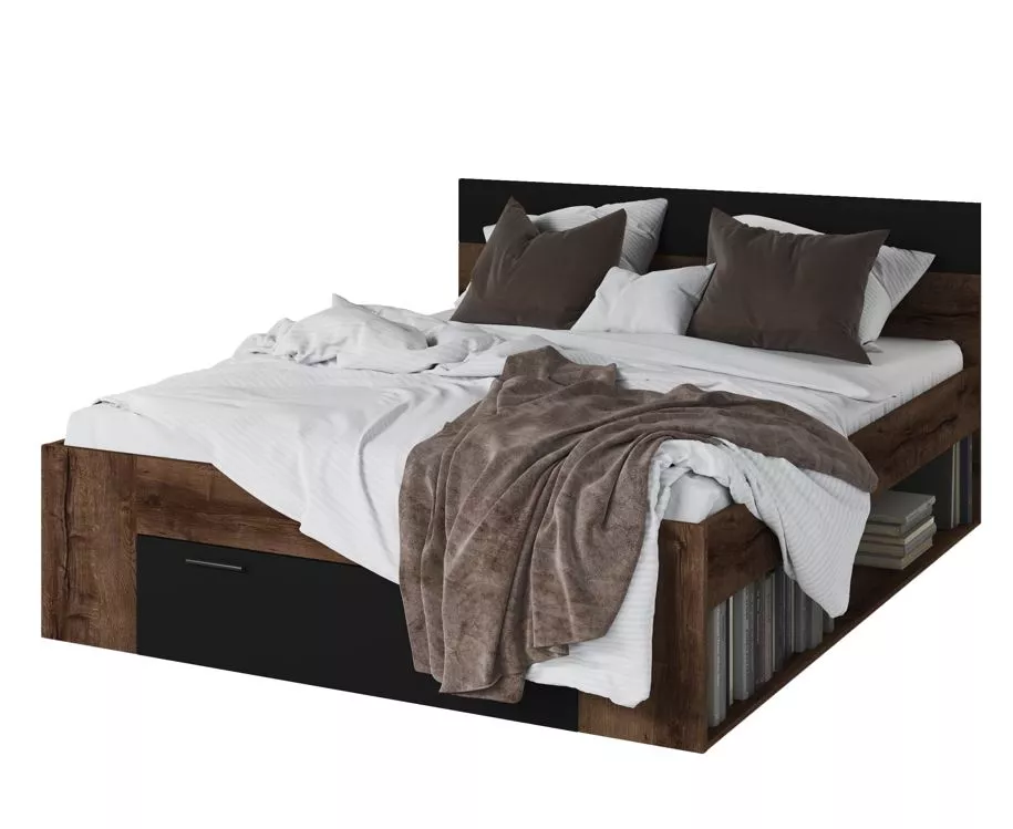 Manželská postel CROWEL o spací ploše 160x200 cm je dokonalým centrem klidu a pohodlí ve vaší ložnici. Čelo postele chrání zeď před znečištěním, a zároveň dodává prostoru elegantní vzhled. Praktický šuplík je skvělé řešení pro ukládání ložního prádla. Na obou stranách pak najdete poličky určené pro knihy nebo drobné předměty, které chcete mít po ruce před spaním.