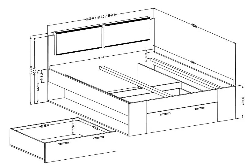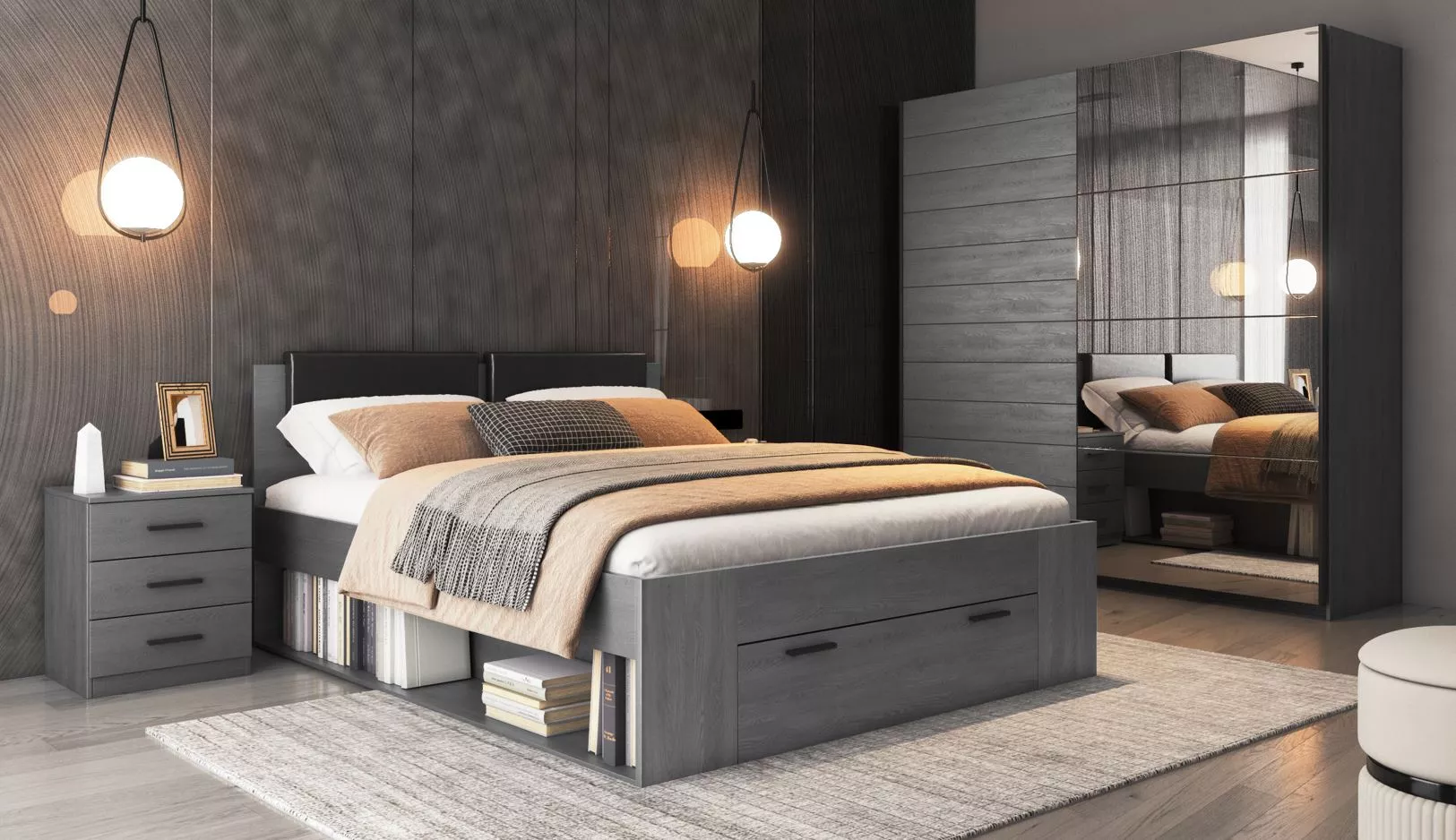 Manželská postel se šuplíkem 140x200 CROSBY - dub carbon