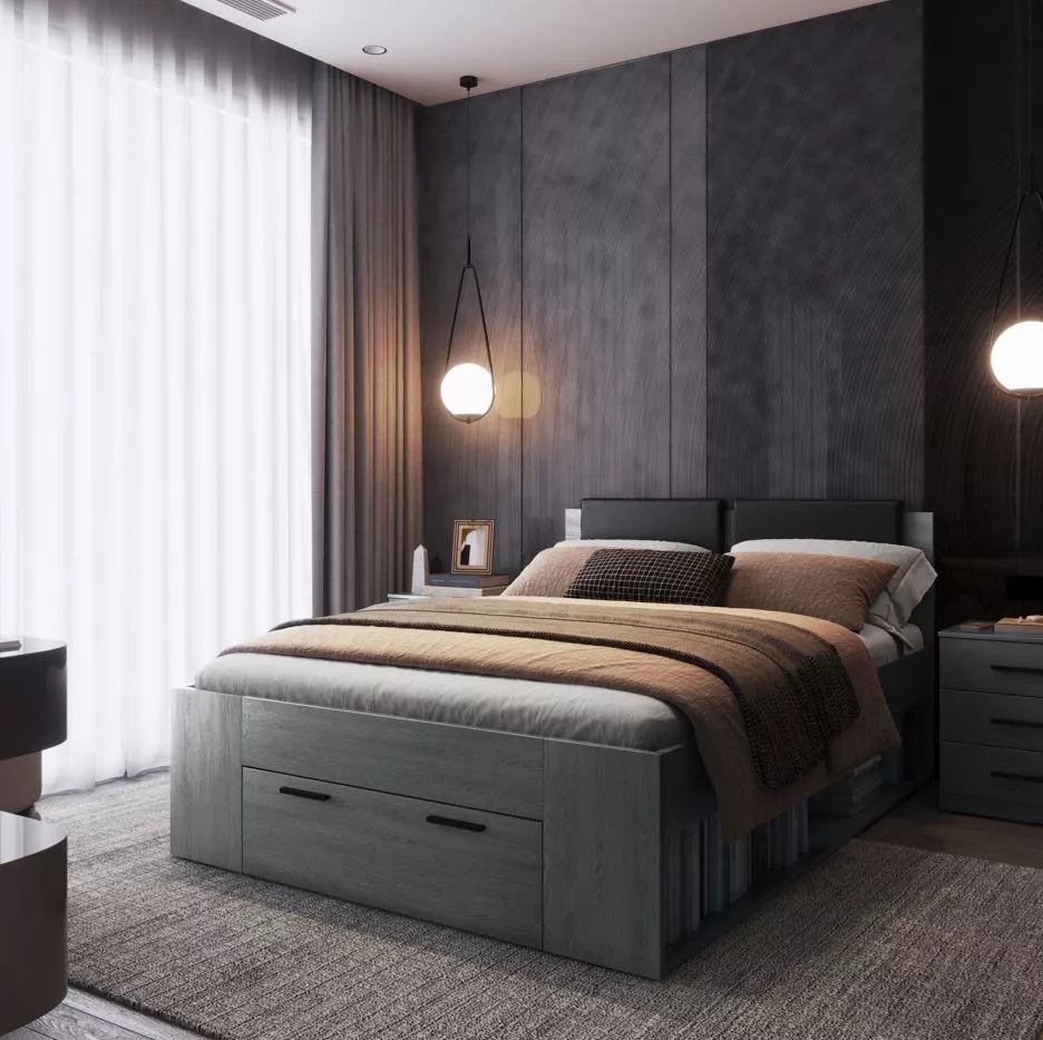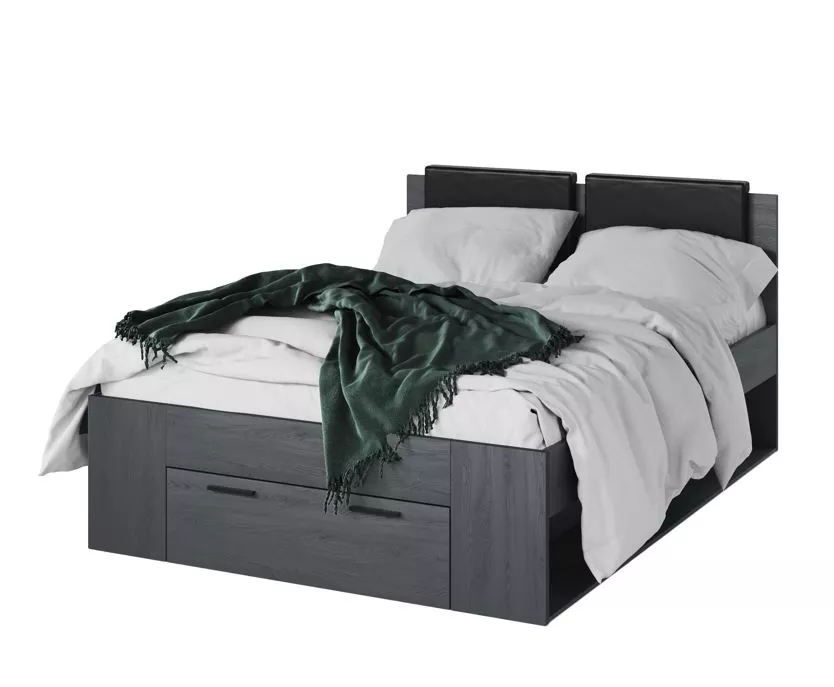 Manželská postel se šuplíkem 160x200 CROSBY - dub carbon