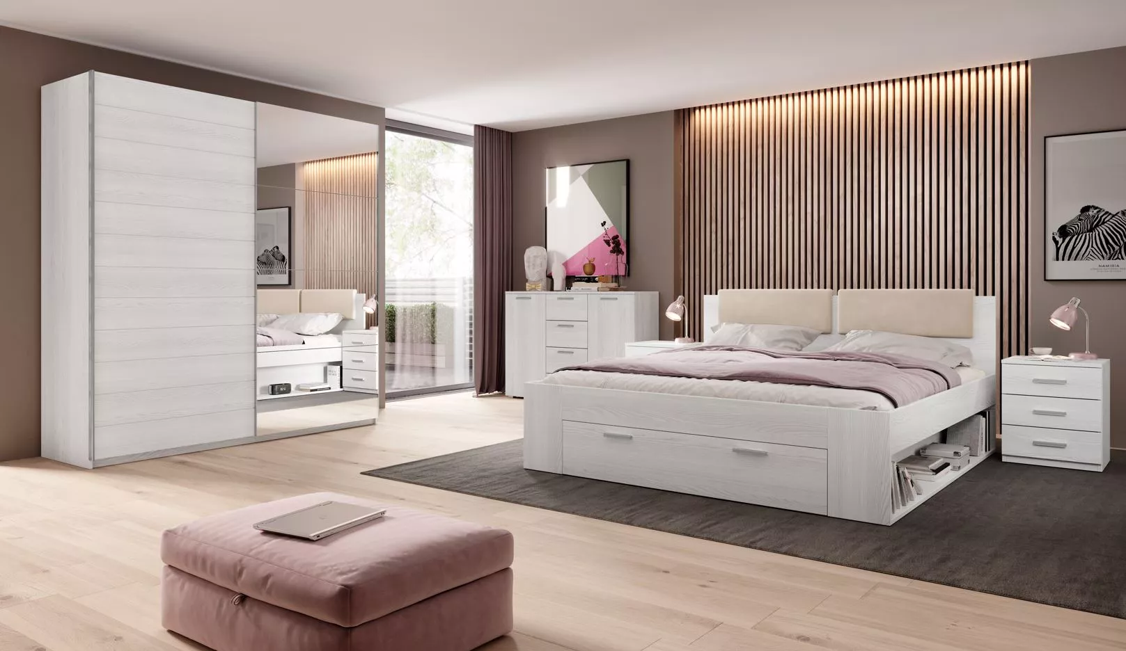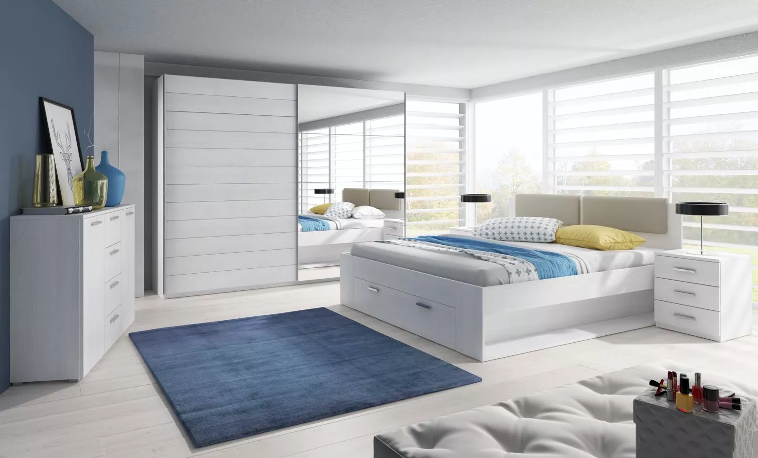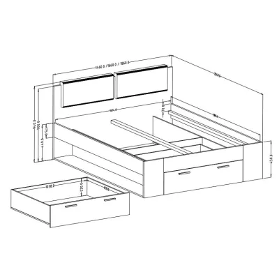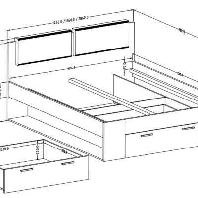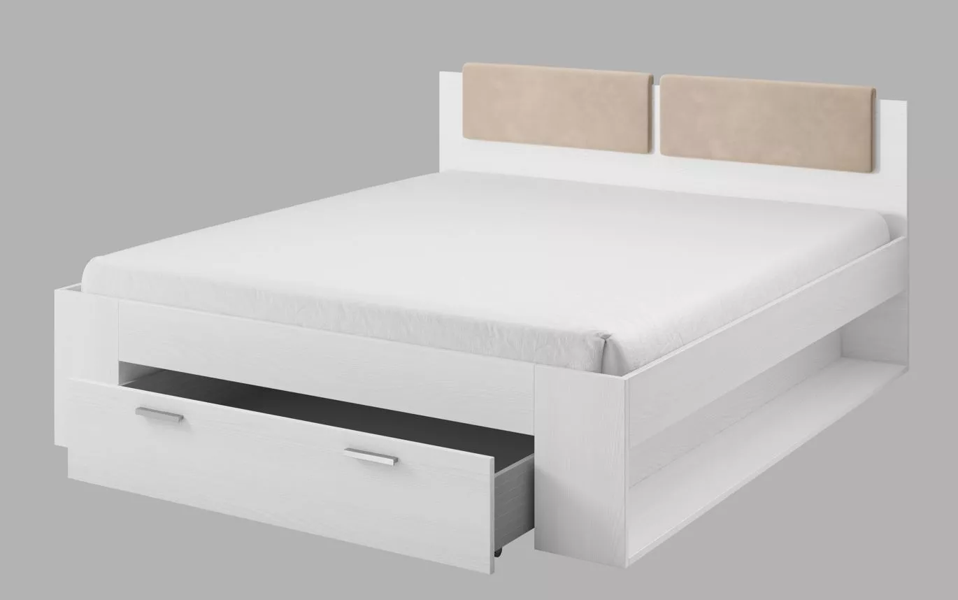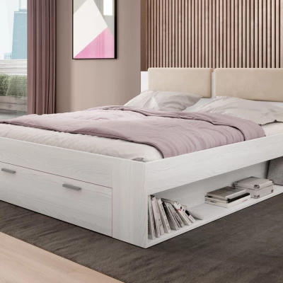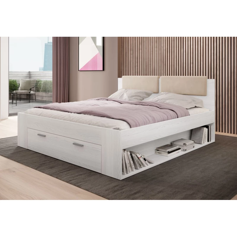 Manželská postel se šuplíkem 180x200 CROSBY - jasan abisko bílý