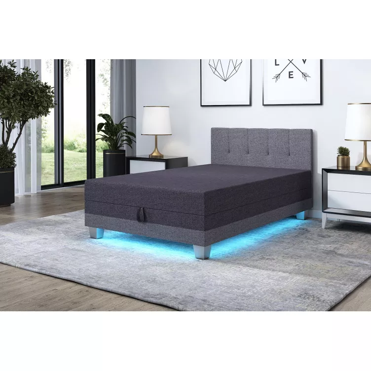 Čalouněná postel INEJ 1 se hodí do všech moderních pokojů. Má praktický úložný prostor, který lze využít k ukládání lůžkovin. LED osvětlení, které je součástí postele, vytváří příjemnou atmosféru. Čalouněné čelo zamezí poškrábaní a ušpinění zdi.