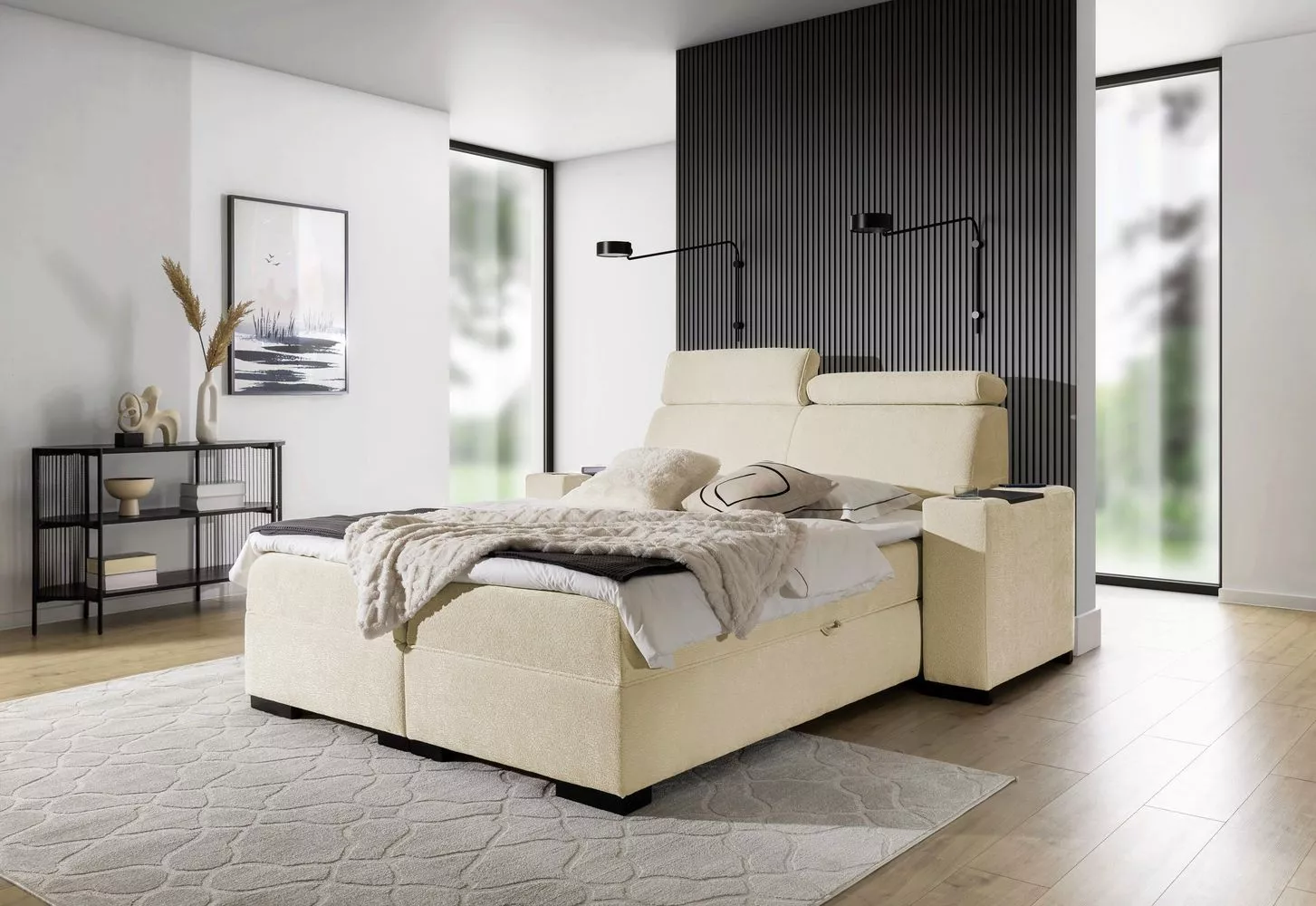 Čalouněná manželská postel 160x200 VALIKA - béžová + topper ZDARMA