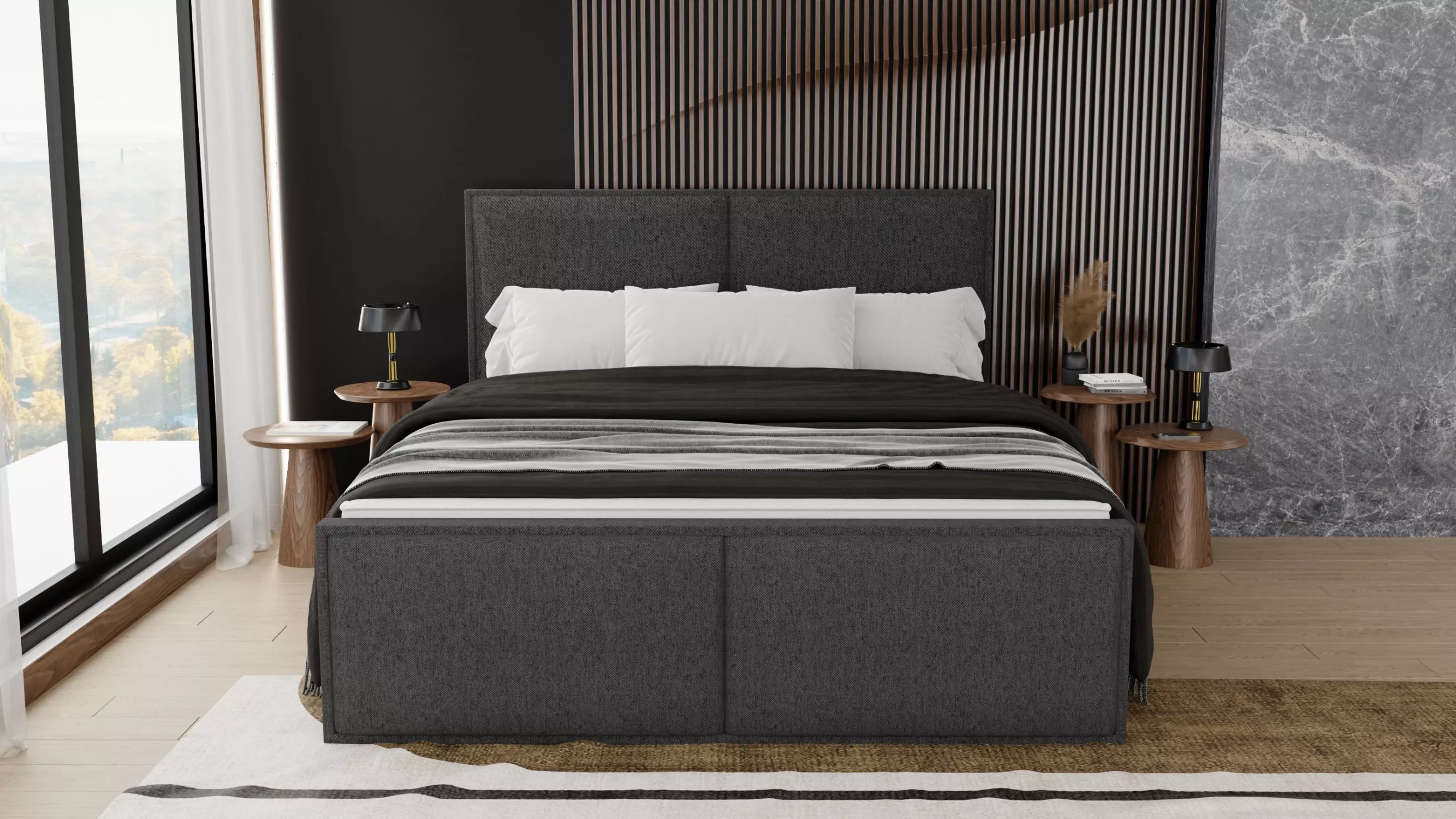 Hotelová postel 200x200 EURIDIKA - tmavě šedá