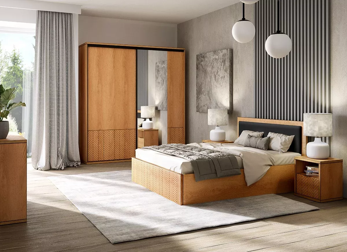 Prostorná postel DELA o spací ploše 140x200 cm je navržena s maximální pečlivostí a s důrazem na ty nejmenší detaily. Charakteristickým znakem postele jsou dekorativní výřezy. Dub karamel je elegantní a estetická barva, která přidá vašemu interiéru nádech přírody.