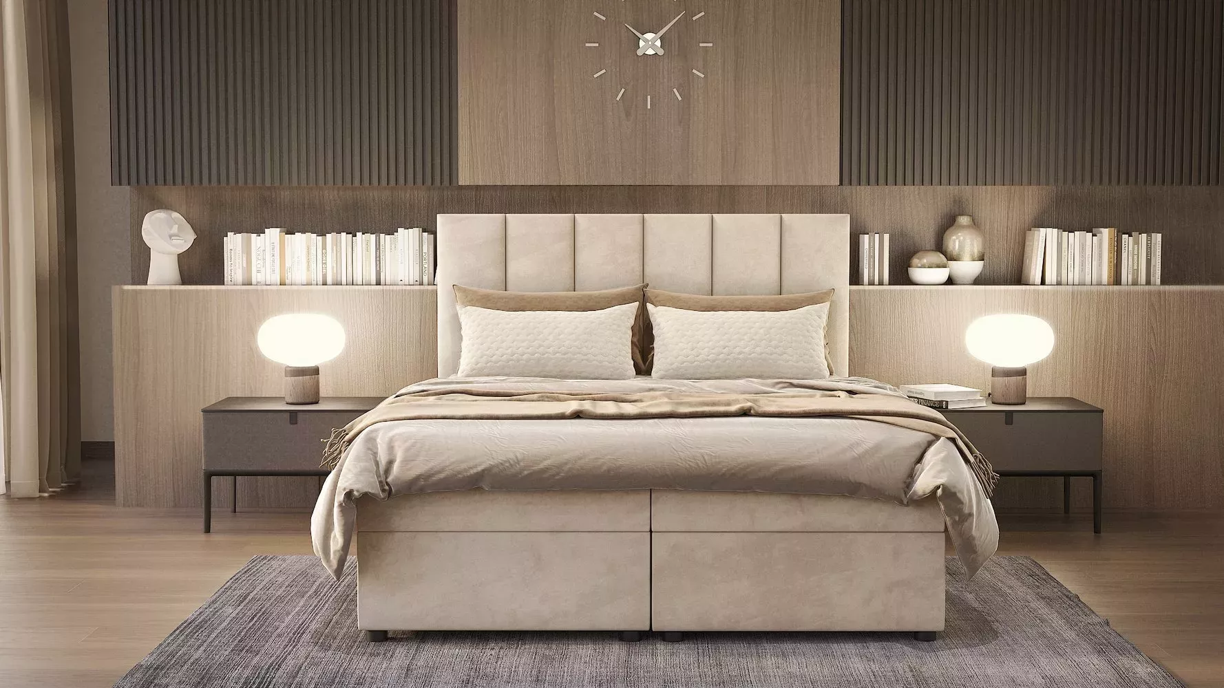 Hotelová postel DELTA je přímo stvořená pro kvalitní odpočinek. S elegantně prošívaným čelem získává lůžko nadčasový vzhled, nechybí ani praktický úložný prostor.