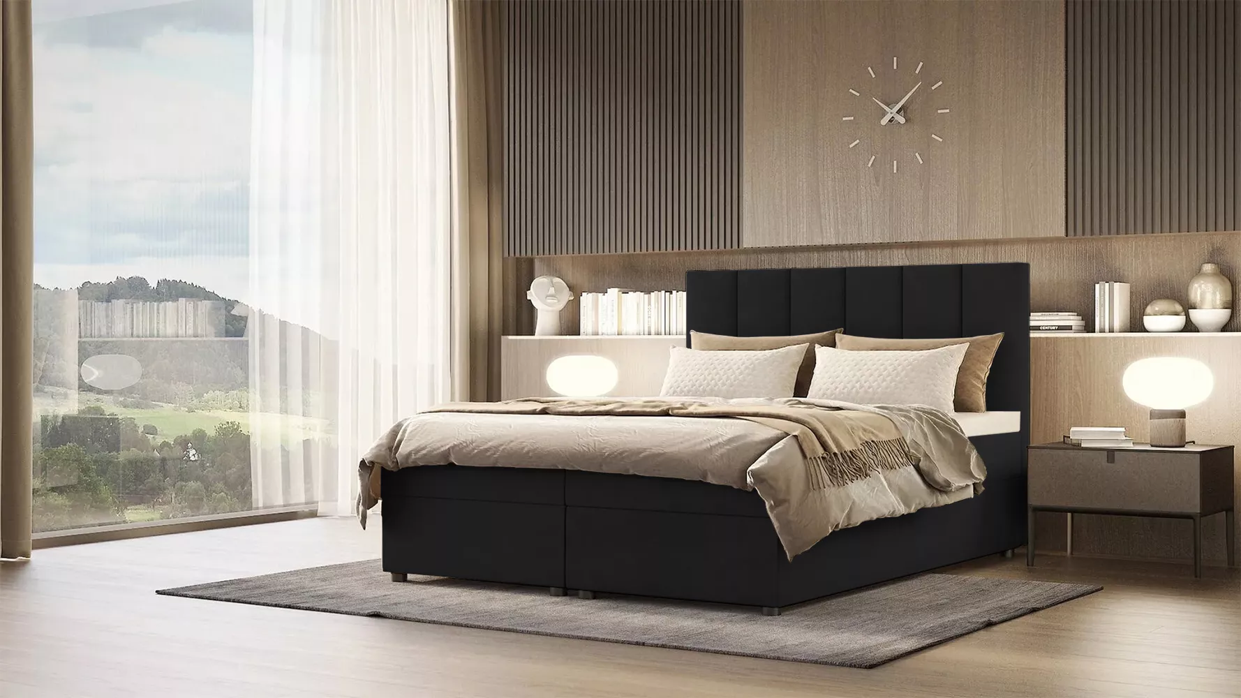 Hotelová postel DELTA je přímo stvořená pro kvalitní odpočinek. S elegantně prošívaným čelem získává lůžko nadčasový vzhled, nechybí ani praktický úložný prostor.