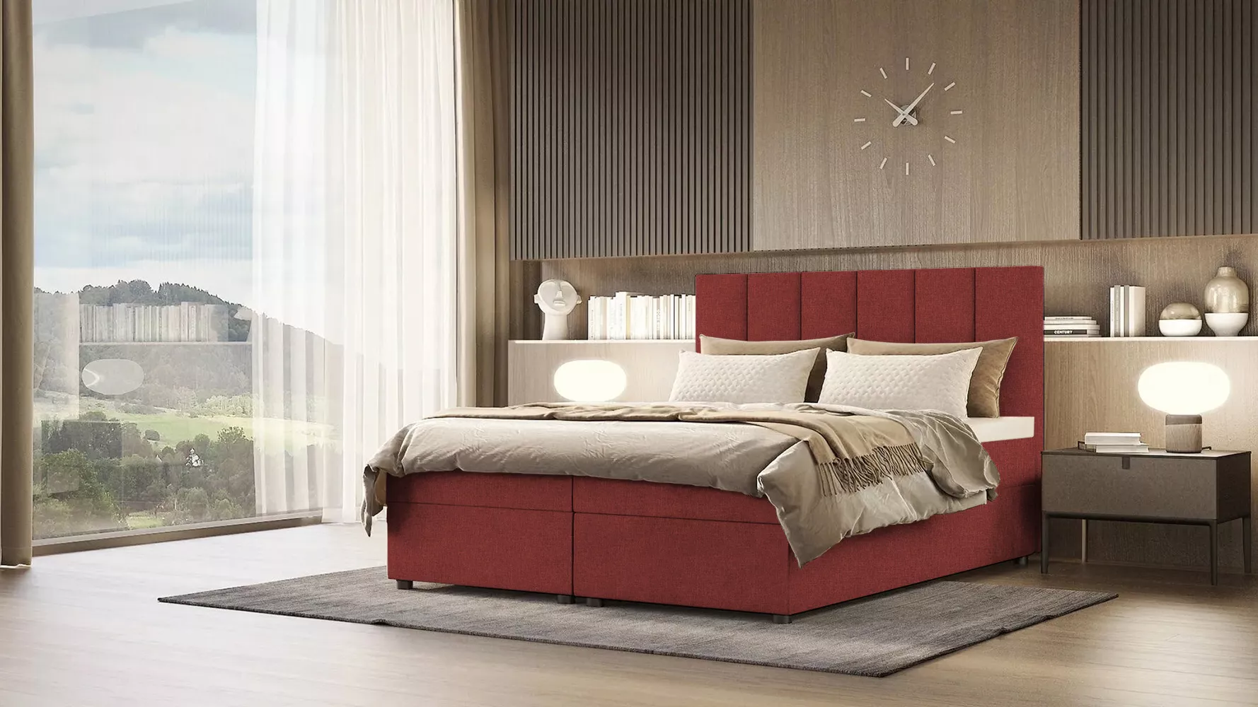 Kontinentální postel DELTA 4 - 200x200, tmavě červená