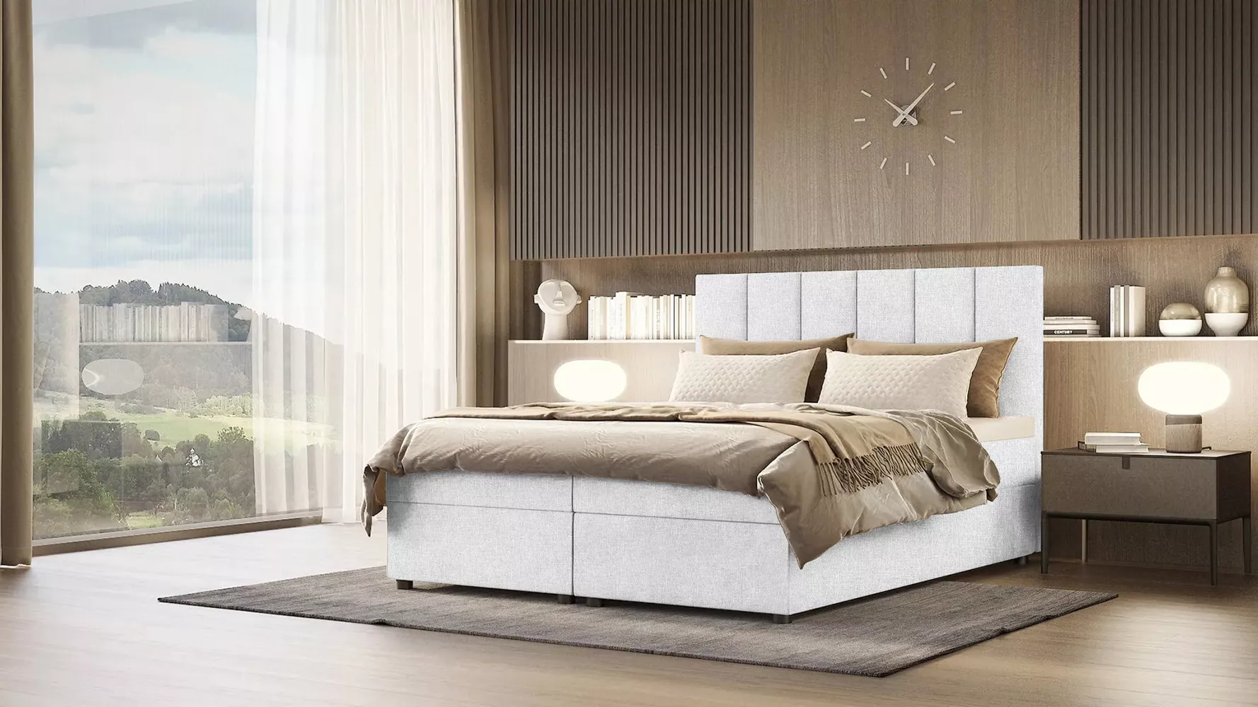 Kontinentální postel DELTA je přímo stvořená pro kvalitní odpočinek. S elegantně prošívaným čelem získává lůžko nadčasový vzhled, nechybí ani praktický úložný prostor.