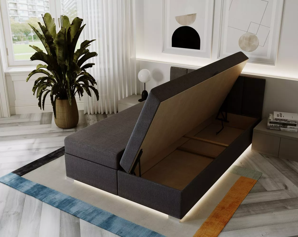 Čalouněná dvoulůžková postel 160x195 PEGY 2 je vynikající volbou pro lidi, kteří ocení pohodlí v ložnici. Postel má úložný prostor, který poskytuje dostatek místa pro uložení lůžkovin. Prošívané čelo postele zlepšuje celkový komfort používání.