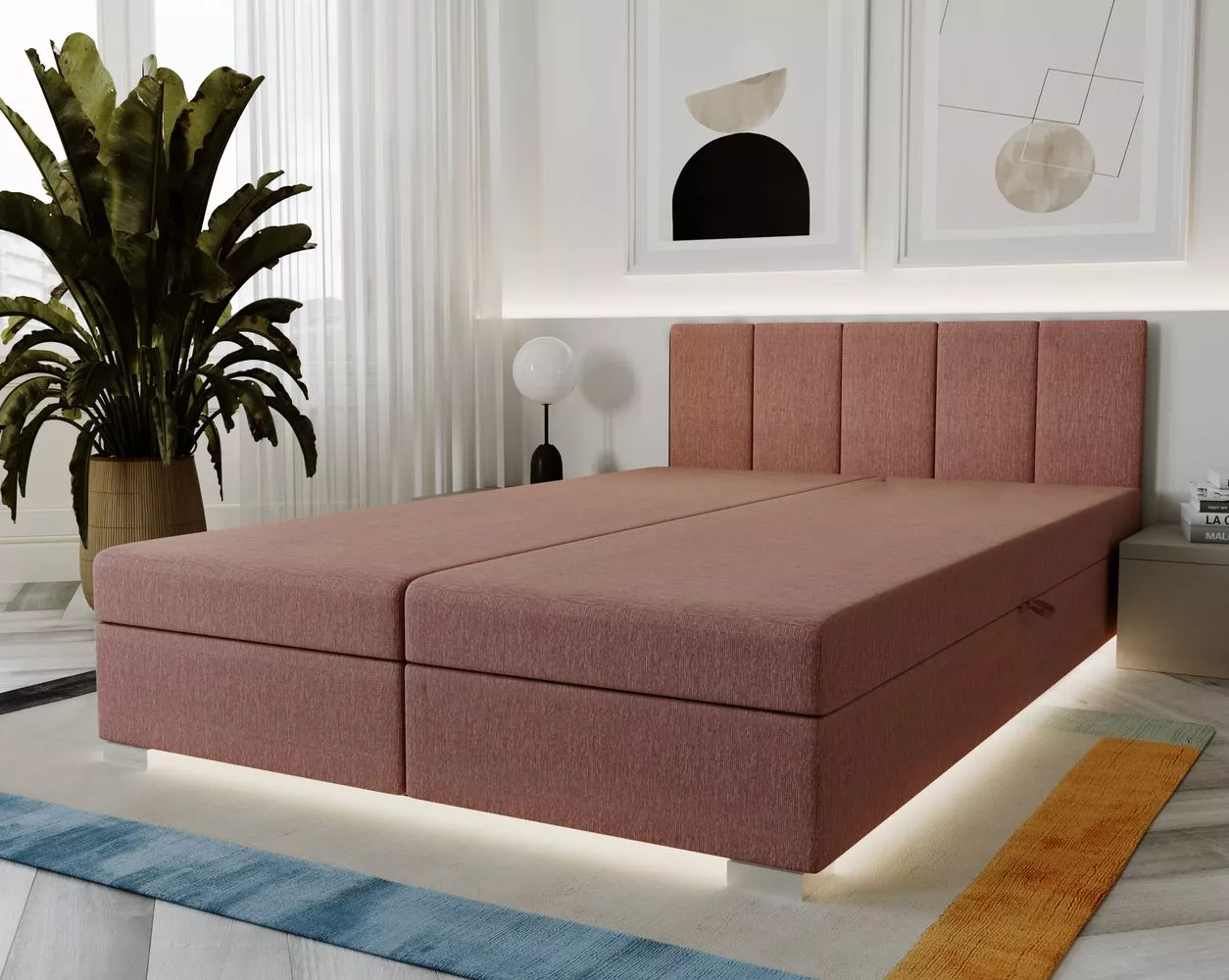 Čalouněná dvoulůžková postel 180x195 PEGY 2 - pudrově růžová