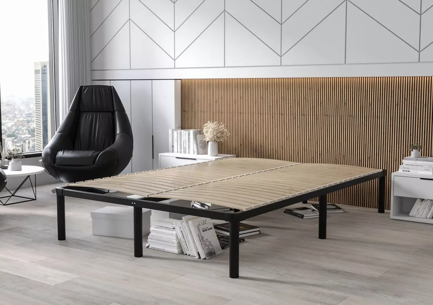 Rám postele s roštem WAFIC se hodí do všech ložnic. Na výrobu postele byl využit kvalitní materiál jako je kov.
