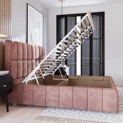 Moderní postel 200x200 ARLETE 2 s úložným prostorem vám zajistí pohodlný spánek a zkrášlí každou ložnici. Čalouněné čelo zamezí poškrábání a zašpinění zdi.