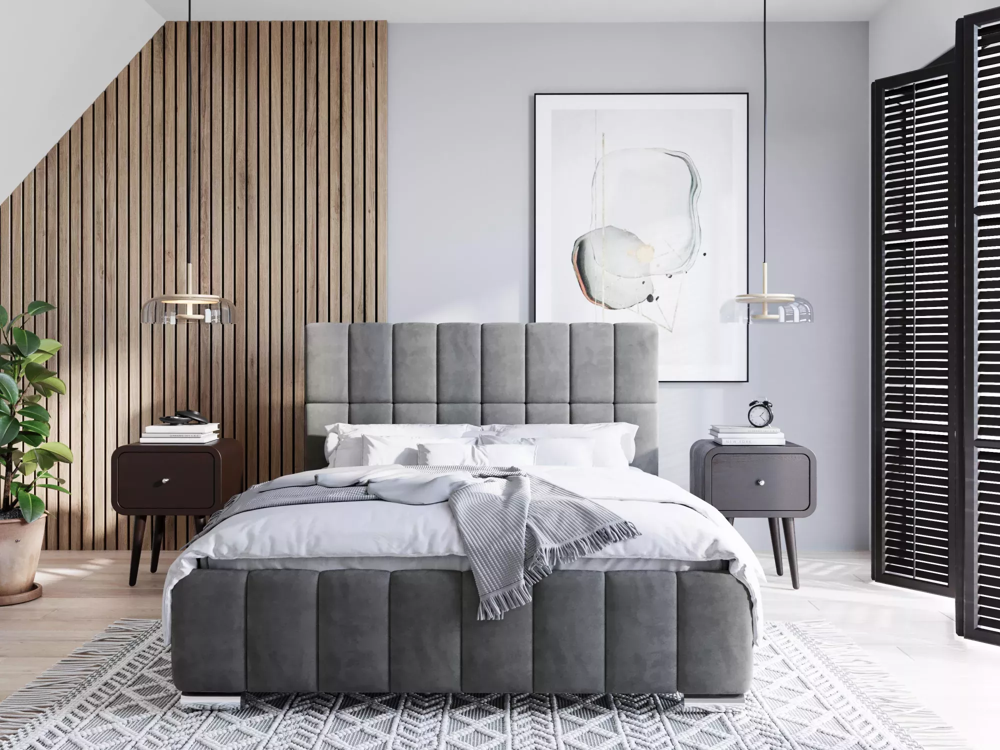 Moderní postel 200x200 ARLETE 2 s úložným prostorem - šedá