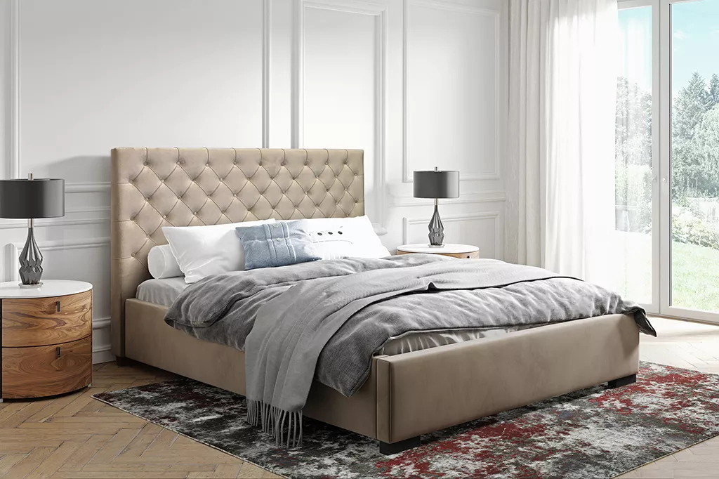 Moderní postel 160x200 ARLETE vám zajistí pohodlný spánek a zkrášlí každou ložnici. Čalouněné čelo zamezí poškrábání a zašpinění zdi.