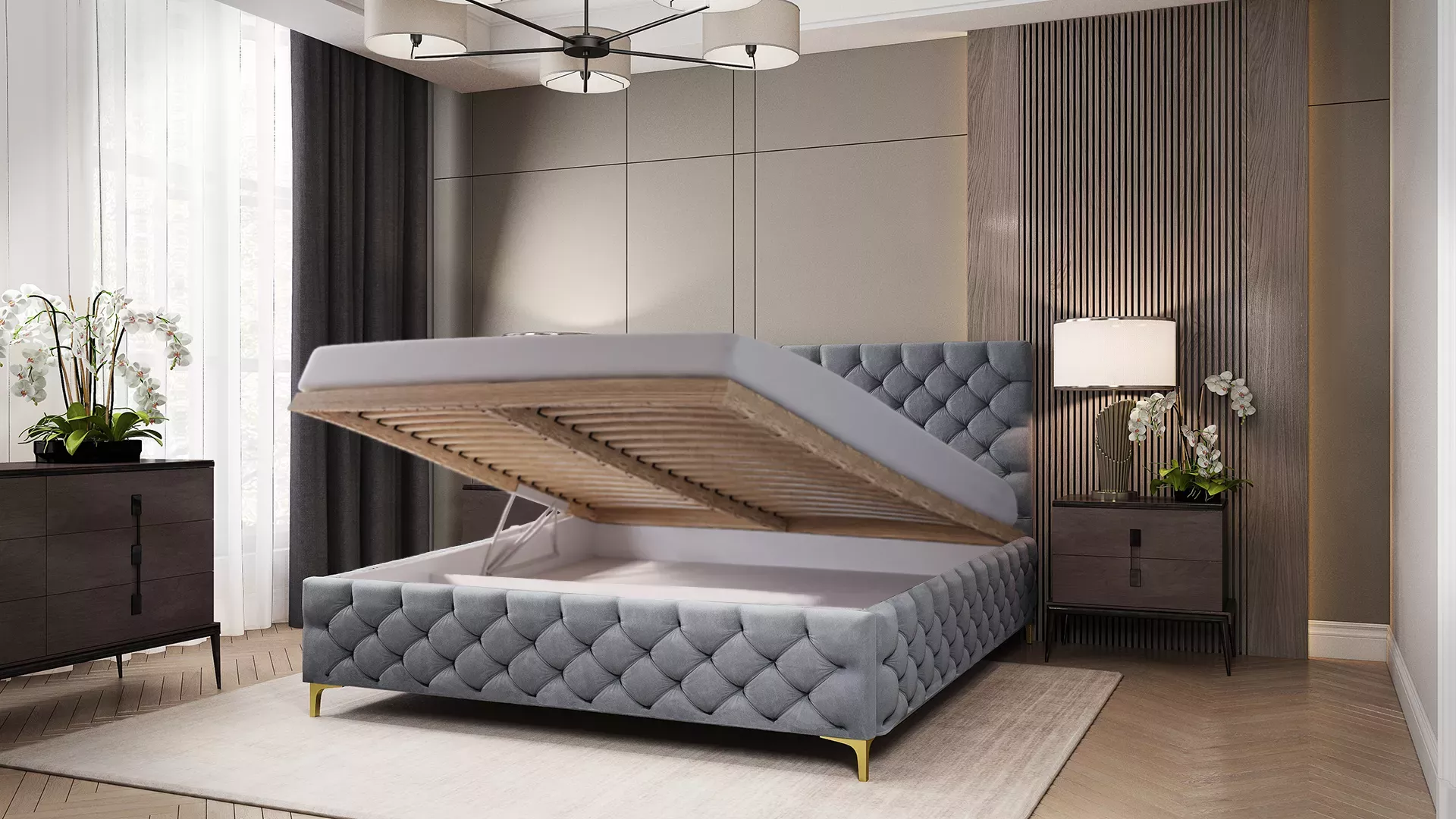 Součástí postele je rošt. Vhodné matrace k dokoupení najdete v sekci Doporučujeme přikoupit.