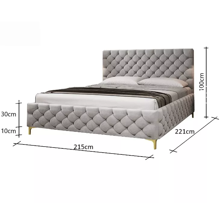 Čalouněná postel 200x200 RUBBINA kombinuje moderní design, praktičnost a pohodlí. Je vybavena vysokým čelem, které zabraňuje zašpinění a poškrábání zdi.