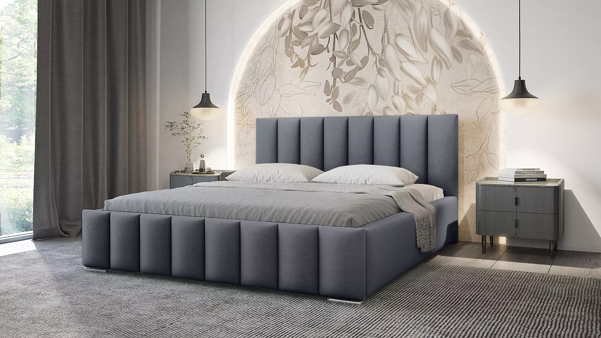 Elegantní čalouněná postel 200x200 MADALENA - šedá