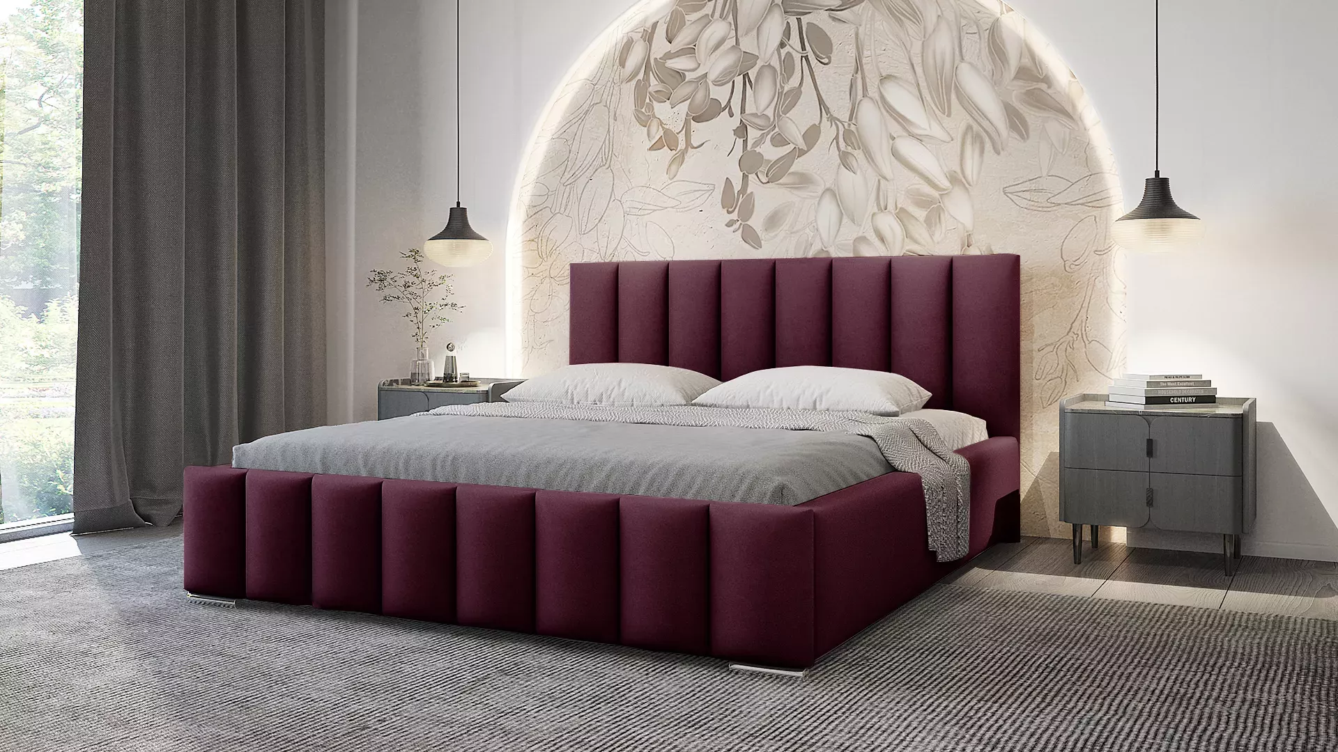Elegantní čalouněná postel 200x200 MADALENA - vínová