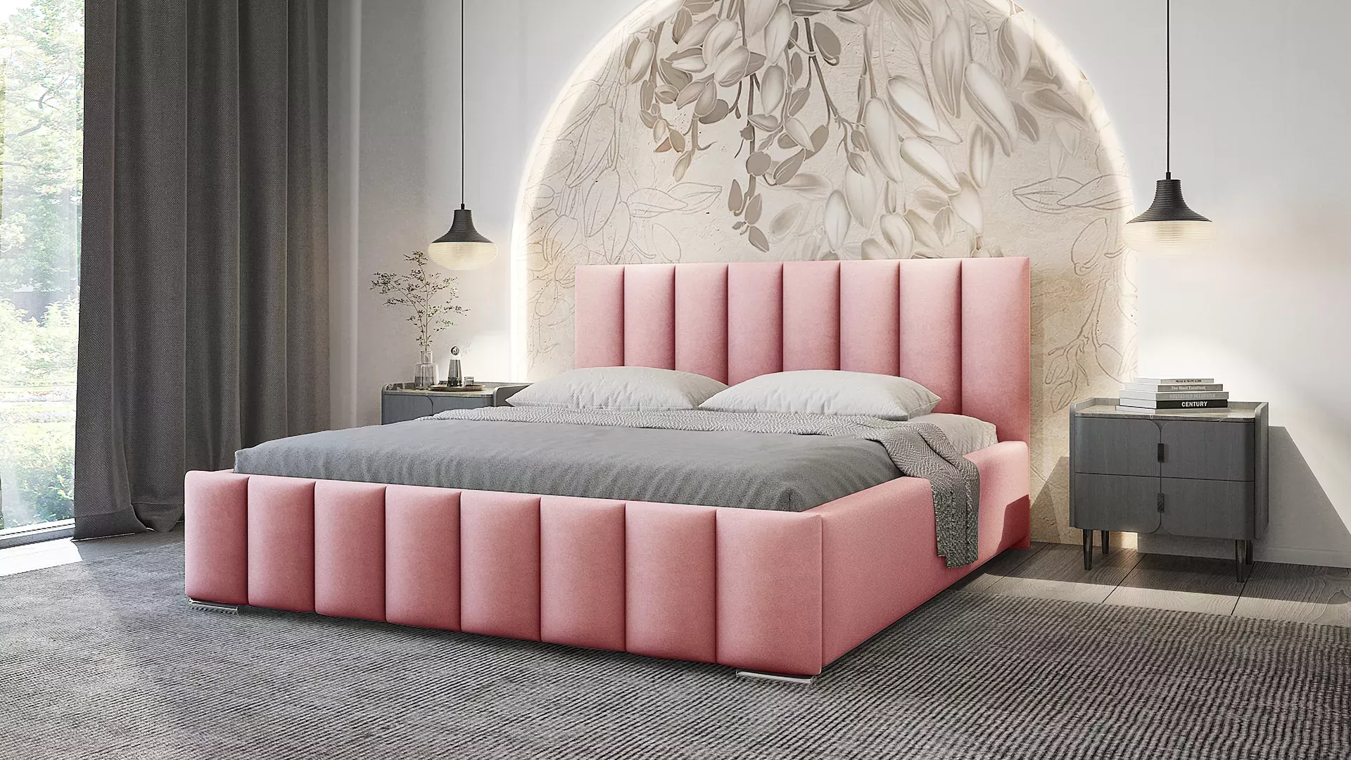 Elegantní čalouněná postel 180x200 MADALENA - růžová