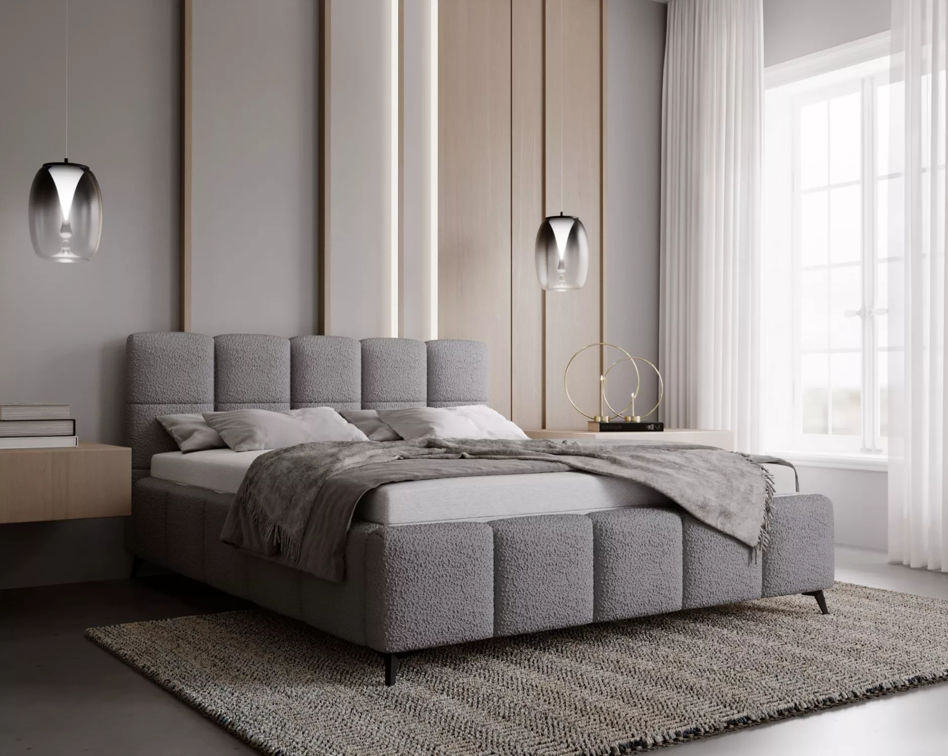 Čalouněná postel 160x200 ARMINDA kombinuje moderní design, praktičnost a pohodlí. Vyšší čelo poskytuje příjemný komfort při čtení knih nebo sledování televize.