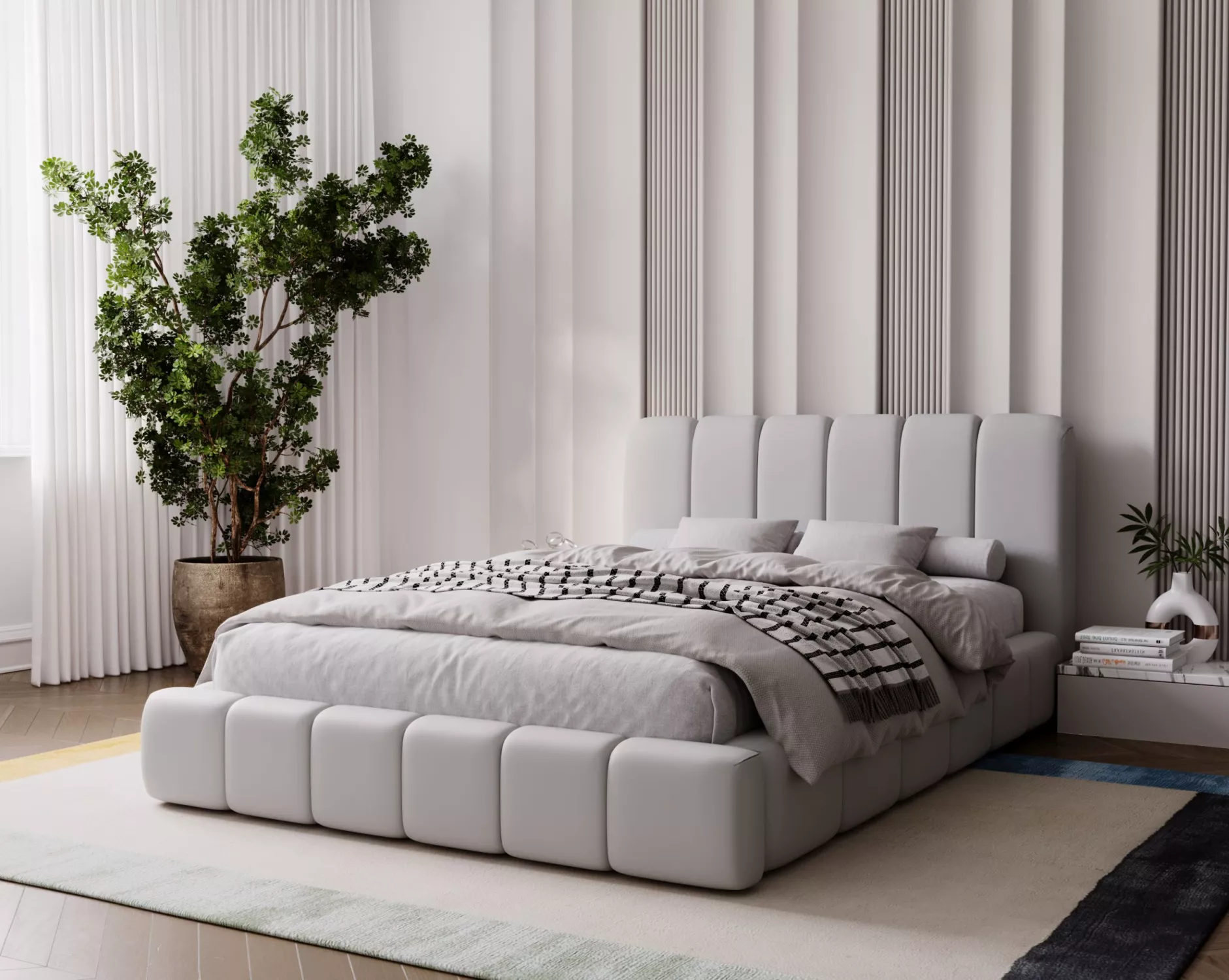 Čalouněná postel 180x200 FATUMATA - světle šedá