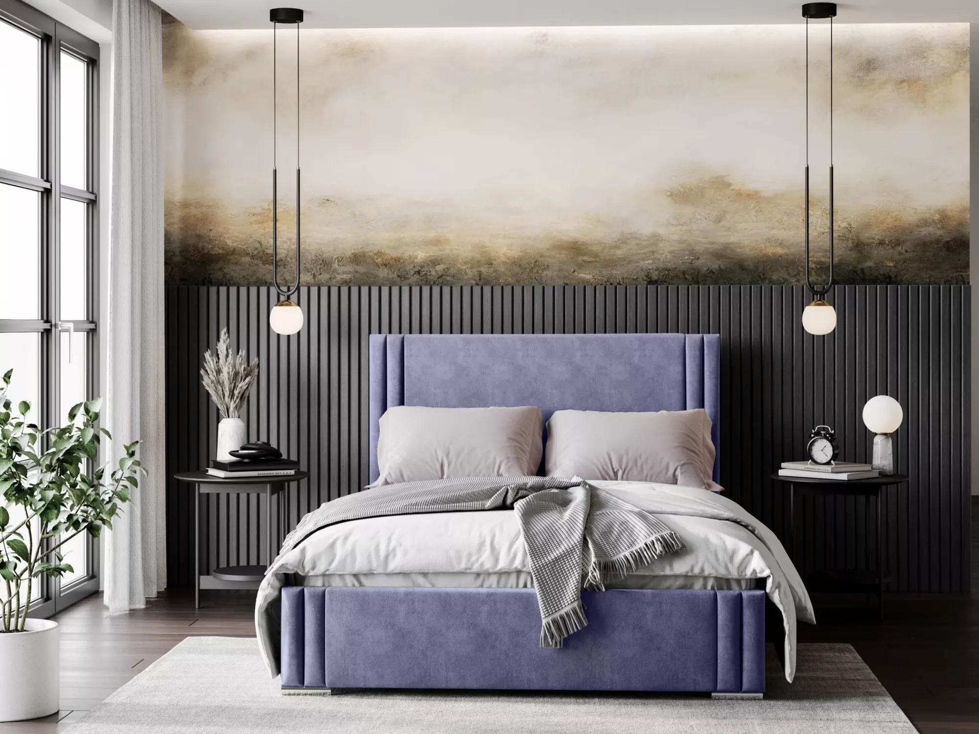 Designová manželská postel 140x200 EMILY zaujme svým designovým čelem, které zamezí poškrábání a zašpinění zdi. Postel skvěle zapadne do moderních a minimalistických interiérů ložnic.
