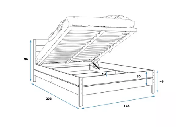 Součástí postele je rošt a matrace. Postel dodáváme bez vyobrazených polštářů.