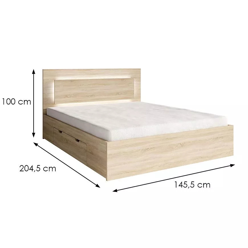 Manželská postel se šuplíky 140x200 DUITAMA - dub sonoma + LED osvětlení ZDARMA